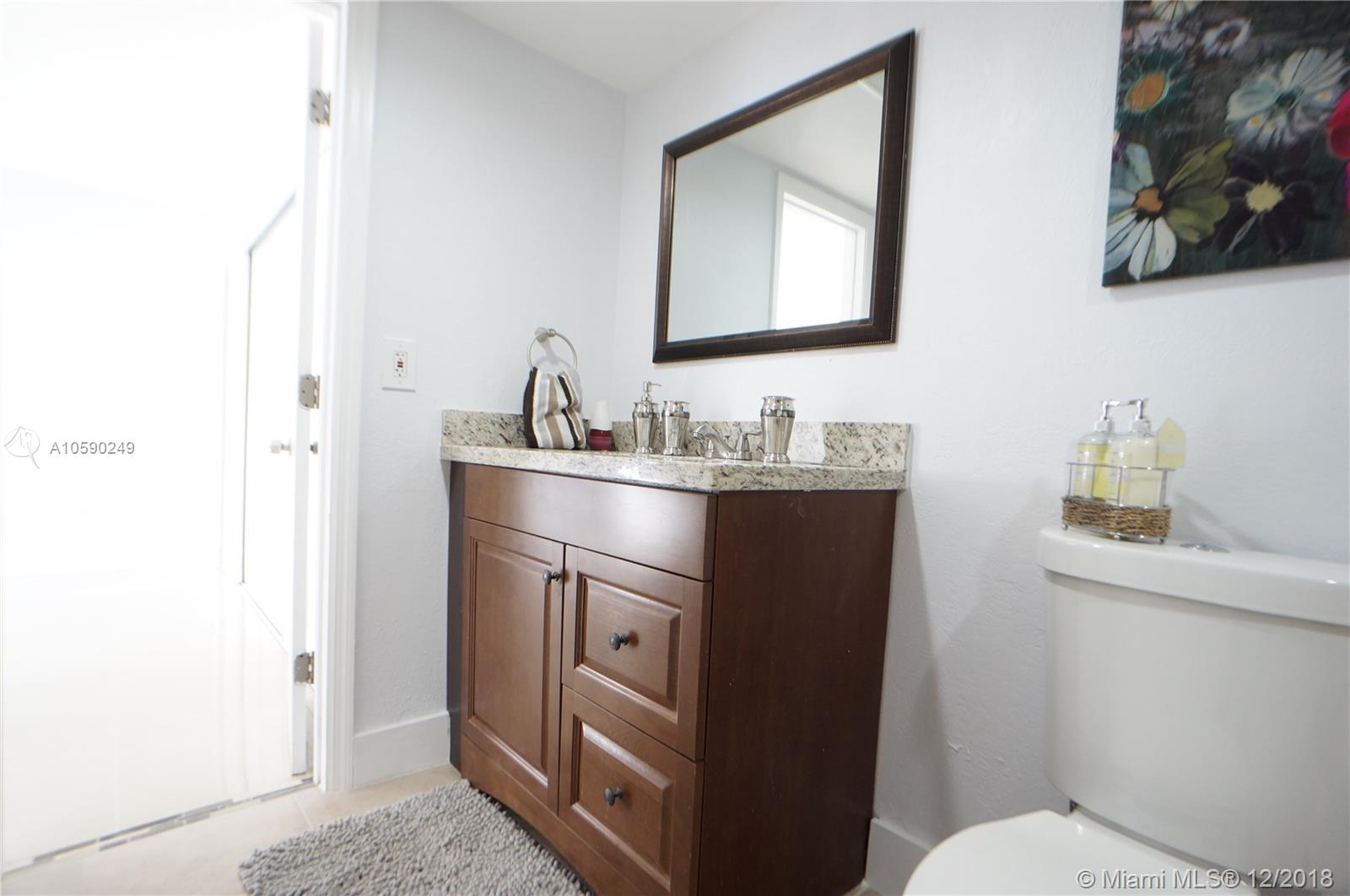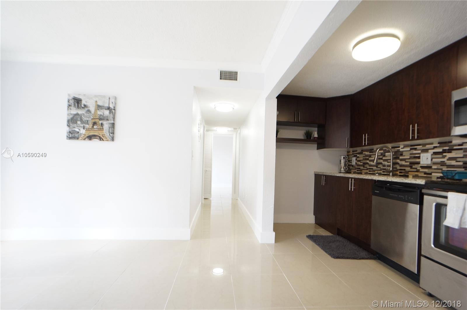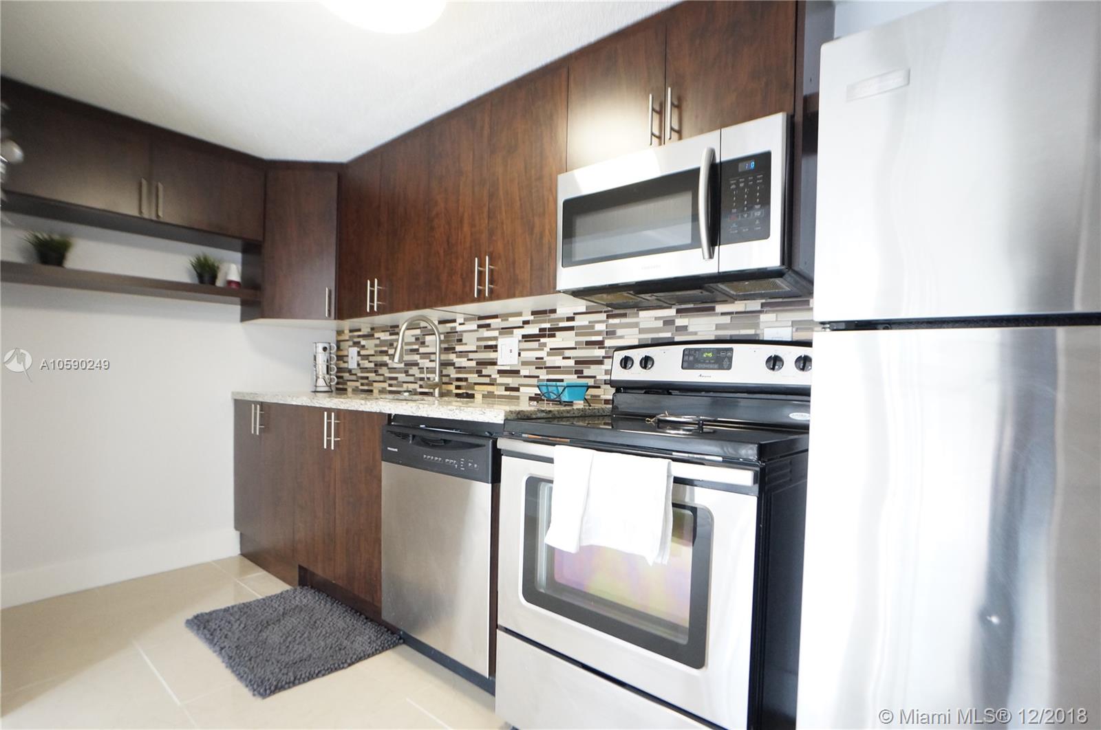 Investor's dream! Nicest unit at Doral Gardens! Forget the rest and bring your pickiest client to see this completely remodeled (2016) two bedrooms (one bedroom converted to two) and one bathroom first floor corner condo with updated kitchen with granite counter-tops and Stainless Steel appliances! Updated bathroom with modern shower panel and glass door (to be installed soon). High end porcelain tiles with new baseboards and crown moldings. All new A/C and water heater. Large fenced in patio private patio. Common laundry room located outside right above unit. Investors welcomed, can rent right away with very low HOA fees and pet friendly (one pet up to 40 lbs). This one's a winner, rents fast and easy for $1,500. NO NEED TO CALL FOR STATUS, IF ACTIVE SHOW AND SELL!!