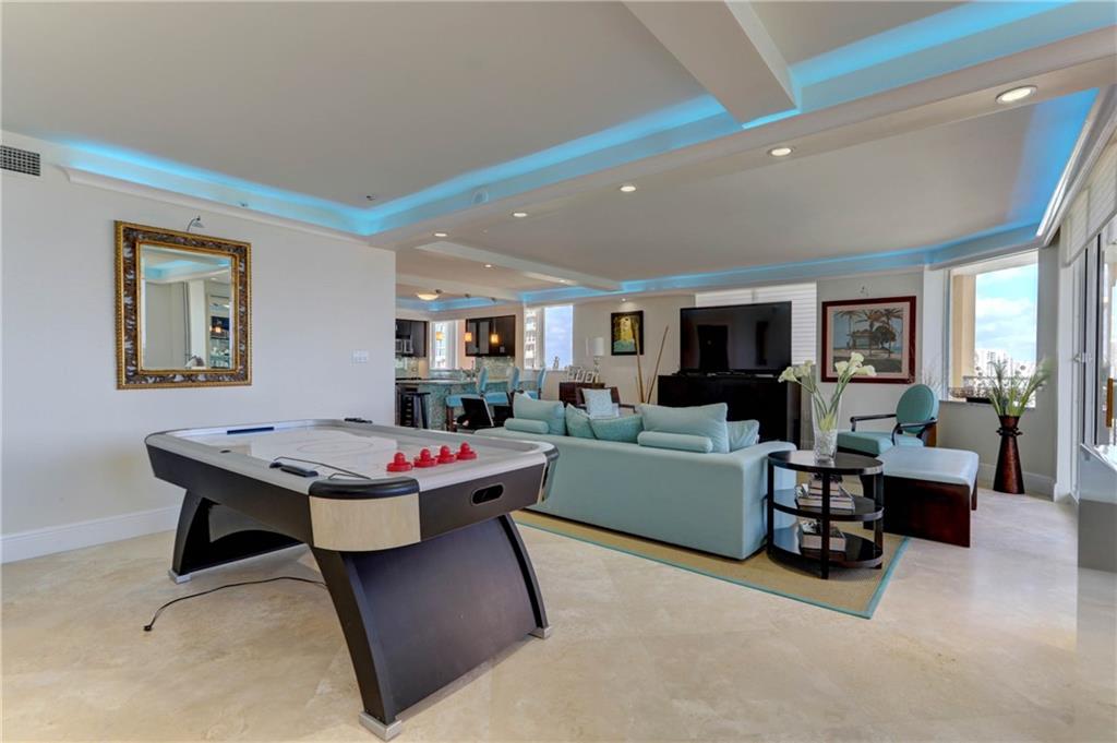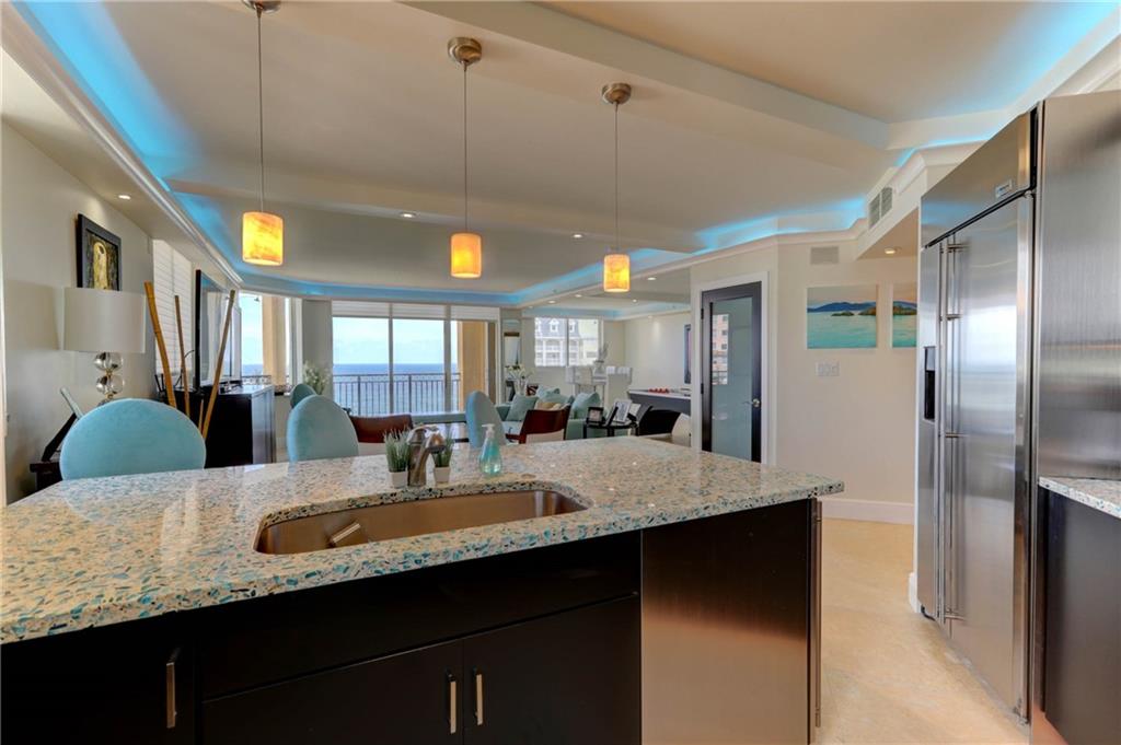 NE corner unit w/Direct Ocean View & Wraparound Terrace. Saturnia Marble Floors in the entire unit. (Renovated 2011) New Vetrazzo Chef’s Kitchen/High End Stainless Appliances, large pantry & deep sink, new baths, crown molding, LED Lighting, BOSE Stereo System, Full Laundry Room, Plenty of Closets, 2 Garage Parking Spaces, Dual Master Suites w/ private terraces. Private Beach Club on Sand w/ pool/ Jacuzzi, Private Cabanas for Sale. 24 hr valet, Gym, Sports Lounge. 2 large dogs OK, can rent 3X /yr. 3-month min, Reserves in Budget, Conventional Loans OK. 3rd bedroom wall open for large living room/formal dining room or bonus room.