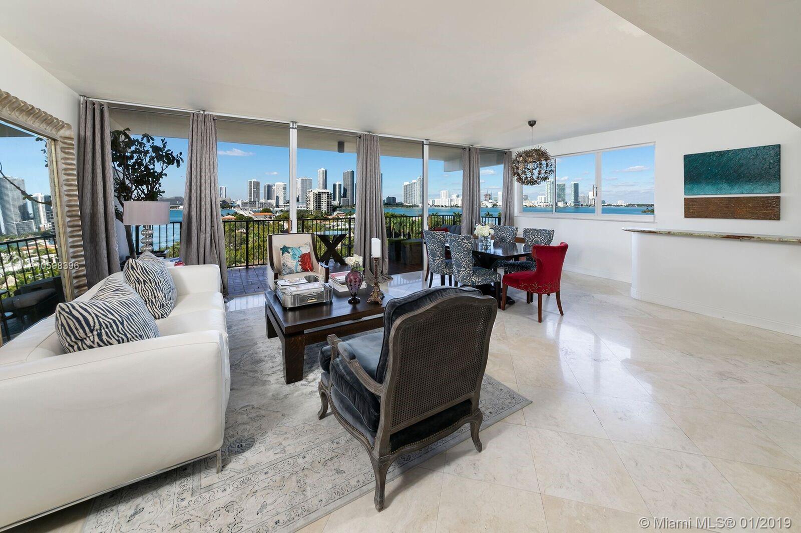 Huge price reduction. Motivated seller! Enjoy spectacular sunsets & unobstructed wide bay with city skyline views from every angle in this spacious home located on prestigious Venetian Causeway. Unique two story corner unit with over 9' walls of sliding glass doors opening onto approximately 754SF of private terraces. One of only a few units in the building with a large extended terrace. This oversized 1 bedroom / 1.5 bath has just over 9' ceilings with a large bedroom upstairs. This corner unit has unobstructed West and North bay views. Incredible location on the red hot Venetian Islands with easy access to South Beach, downtown, Standard Spa, shopping, restaurants and Lincoln Road! Easy to show.