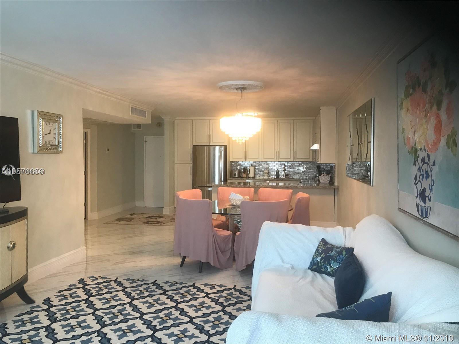 Fully renovated apartment, with beautiful view on Ocean and Intecostal, step from the beach.Community features include Tennis Courts, Fully Equipped Fitness Center, On-Site Convenience Store, Valet Parking, Heated Pool, On-Site Business Center and more. Daily Cafeteria served breakfast and lunch. The apartment has one covered parking space. Owner motivated.