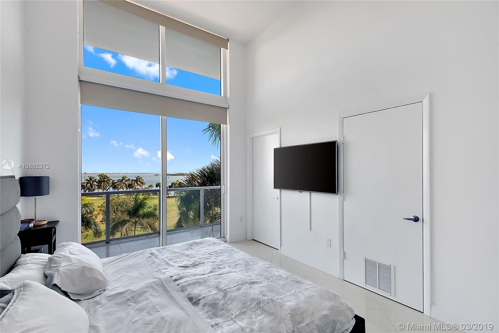 Stop looking at the rest of the boring condos & come home to this stunning, unique unit with 16 ft ceilings and water views. Oversized white tile flooring, open 2nd bedroom gives you the option of a huge living space, plus a large enclosed den and 2 balconies! So many amenities, you will get lost for the first few days! 2 pools, gym, cyber room, residents lounge, art studio, party room, theatre room and excellent security. Amazing location directly across from Margaret Pace Park. Bring your dog! Walking distance to grocery, shopping, restaurants, museums, AA Arena, and the Bayside Market. Easy access to Midtown, the Design District, downtown, Brickell and only 20 minutes to the beach by bike or car. Additional parking may be available. Agents, please see Broker Remarks.