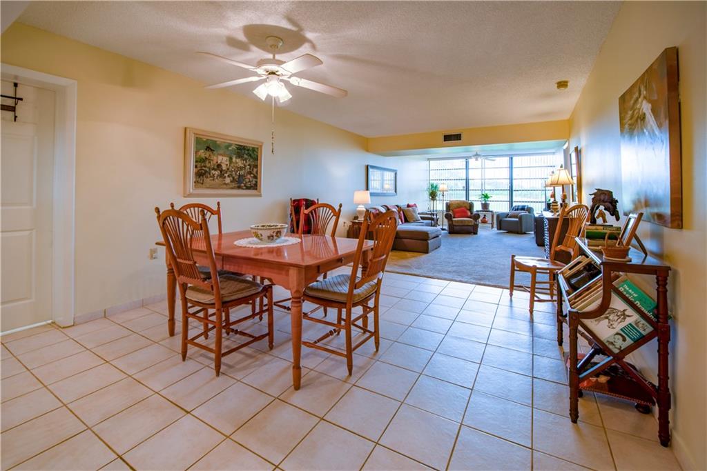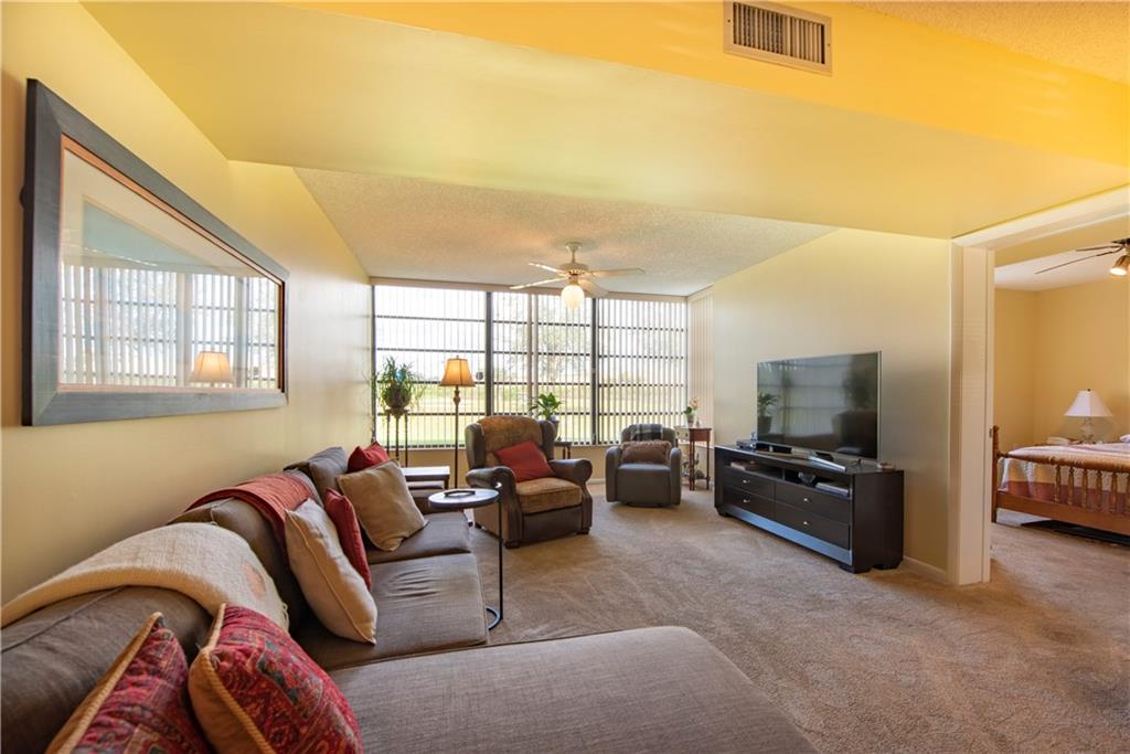 Brand new Impact windows. Immaculate 2BR/2BA + storage room/den/office - first floor corner unit with lovely golf course views and 1,385 SF of living space. Features include foyer entry, eat-in kitchen, spacious living & dining room, split bedroom plan, large master walk-in closet and sizeable laundry room. Maintenance fee includes basic cable and membership to Private Country Club Community - Golf & Pro Shop (+fees), Tennis, 2 Restaurants, Exercise Room, Playground & more. A top school district, convenient location to shopping, dining and major highways for easy commute. Leasing allowed after 2 years of ownership. Reserve Fund (10%). Parking space right in front of the apartment and plenty of guest parking. Great value for this well-maintained community.