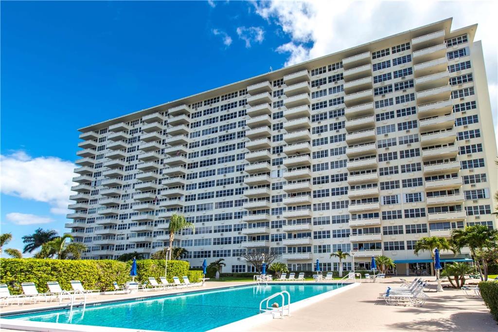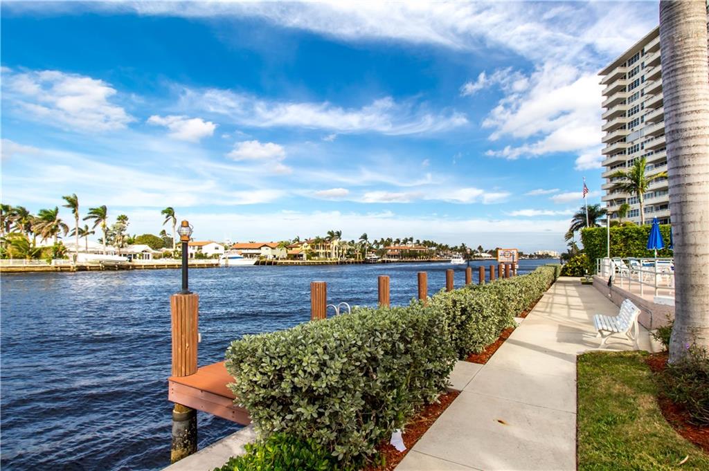 This is the most coveted view in the Coral Ridge Towers complex! Direct unobstructed 180 degree Intracoastal views with daily boat parades and sunsets. This lovely 1 bedroom 1 bathroom apartment has been substantially remodeled from top to bottom. Open kitchen with quartz countertops, chic tile back splash, high quality stainless steel appliances, induction cooktop & custom cabinetry. Remodeled bathroom w/ new tile, vanity & shower. Central AC & hurricane impact windows & door installed. Large private balcony w/ breathtaking views. Resort style pool & garden area situated directly on the Intracoastal Waterway. Located in a beautiful walking neighborhood on a barrier island between the ocean and Intracoastal waterway. Association states one Buyer must be 55, no rentals/pets.