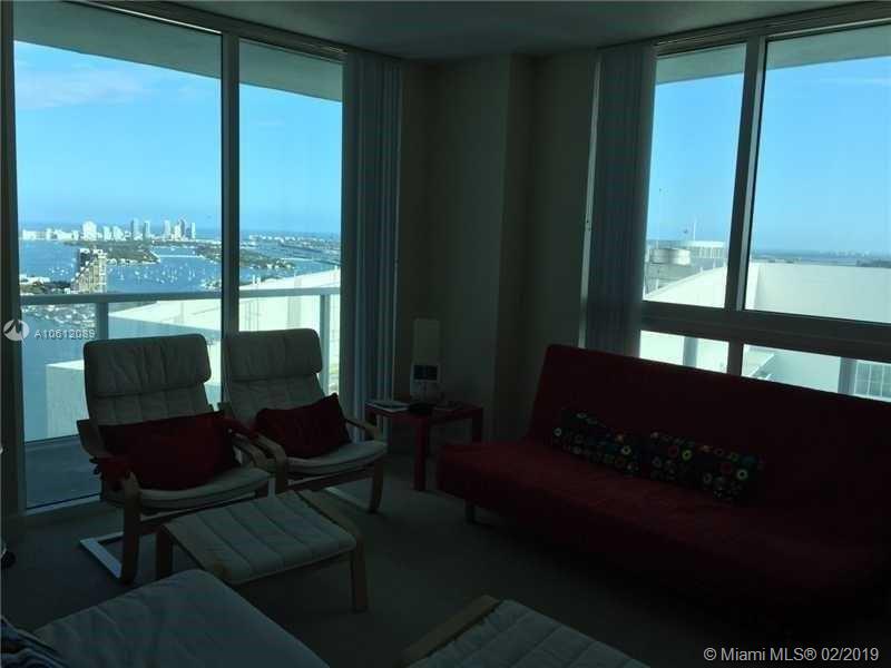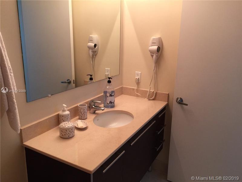 Great Furnished Studio on 42nd floor with stunning direct bay views, ocean, cruise ship, Downtown Miami. Unit comes with 1 assigned parking space, washer / dryer inside unit. Utilities include water, cable, high speed internet, fitness center, valet parking, 2 pool, convenience store. Unit needs some TLC. SELLER MOTIVATED