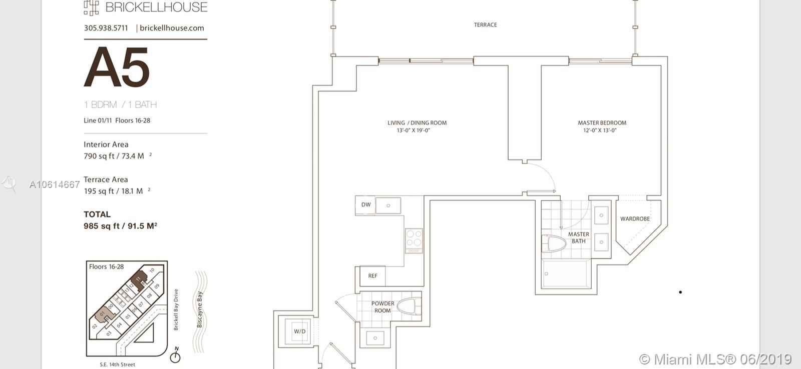 Pristine apartment at Brickell House. This stunning unit features high end appliances, an expansive terrace, spectacular finishes & skyline views. Spacious 1 Bed/1.5 Bath floor plan with top of the line modern finishes, appliances, walk in closets and window treatments. Brickell House is known for being one of the ultimate premier Brickell developments offering residents unparalleled amenities such as heated pool, spa, gym, kids room, 24/7 valet, concierge & 24 hr security. Walking distance to Brickell City Center, world renowned restaurants, shopping, and plenty of outdoor activities. This apt is the highest floor in the 01 line. It is currently rented for $2,300 until June 2019.