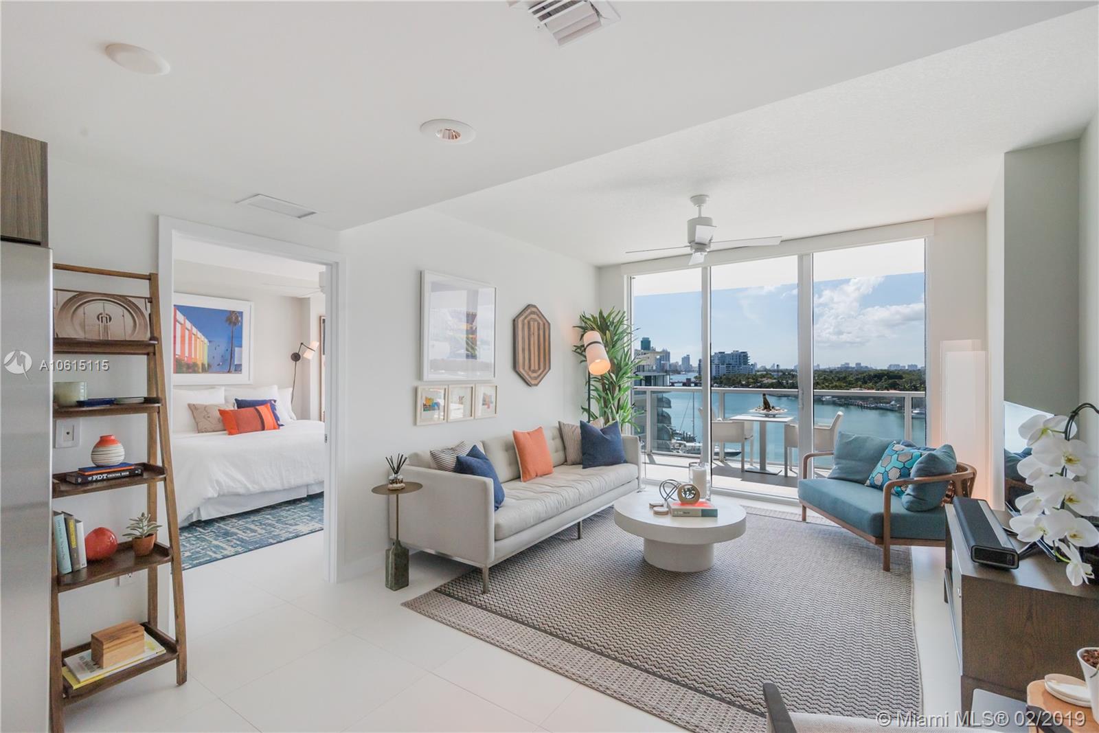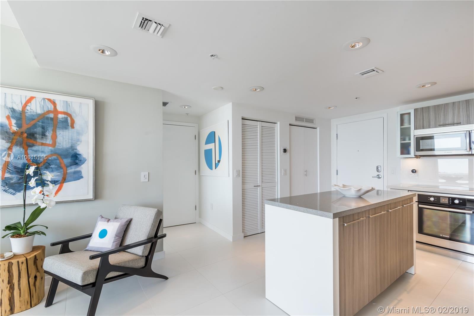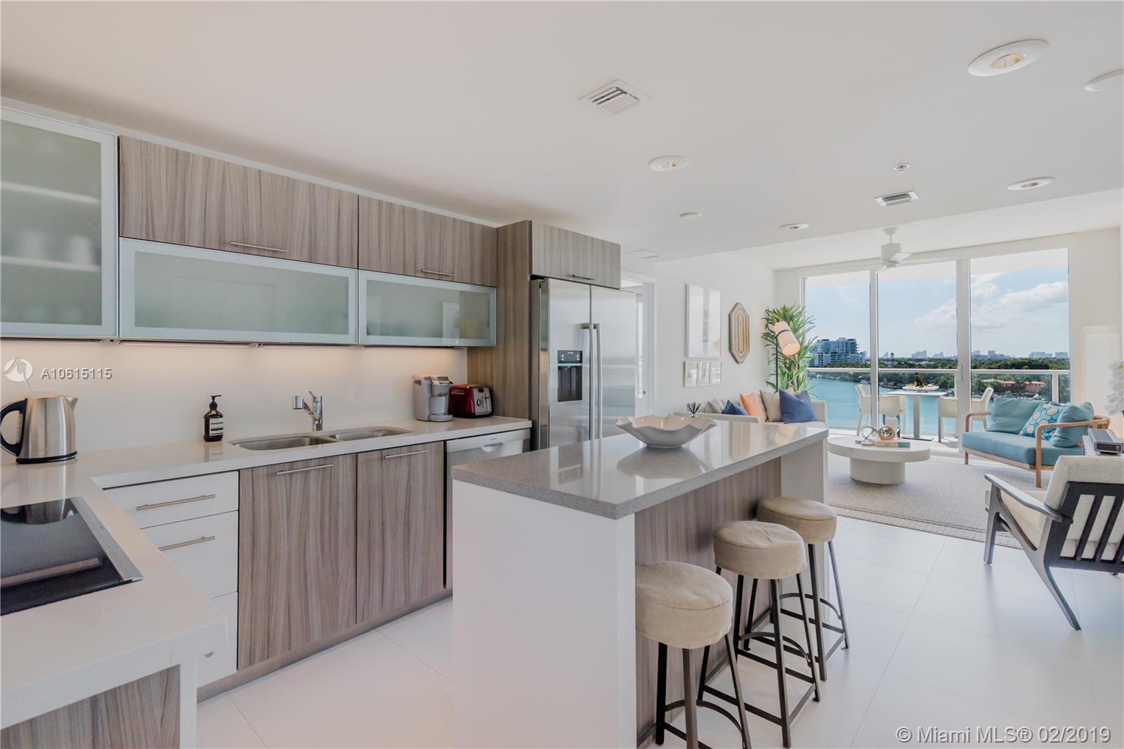 Enjoy magnificent Bay, Intracoastal and Miami Skyline views from every room of this beautifully designed 2BD 2BTH located on the bay. Unit features split floor plan with porcelain floors throughout, custom designed eat-in kitchen with quartz counters, Italian cabinets, Bosch appliances, Full size washer and dryer. Oversized, wrap around balcony ideal for entertaining, relaxing and watching incredible sunsets. Nest Smart system, window shades and built-in closets in every room. Unit is being sold turnkey. Eden House is a secured, boutique building offering great amenities: fully equipped fitness room, pool, hot tub, cabanas on the bay, social room, valet and front desk. Centrally located just one block from the beach, restaurants and shops.