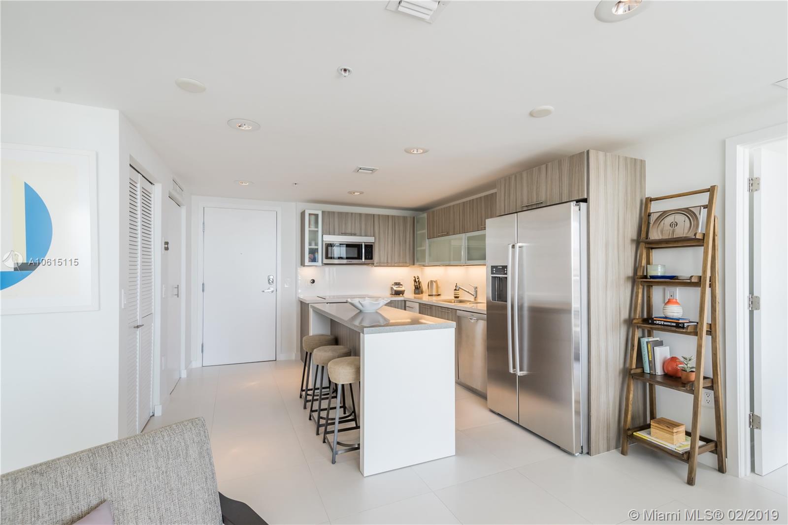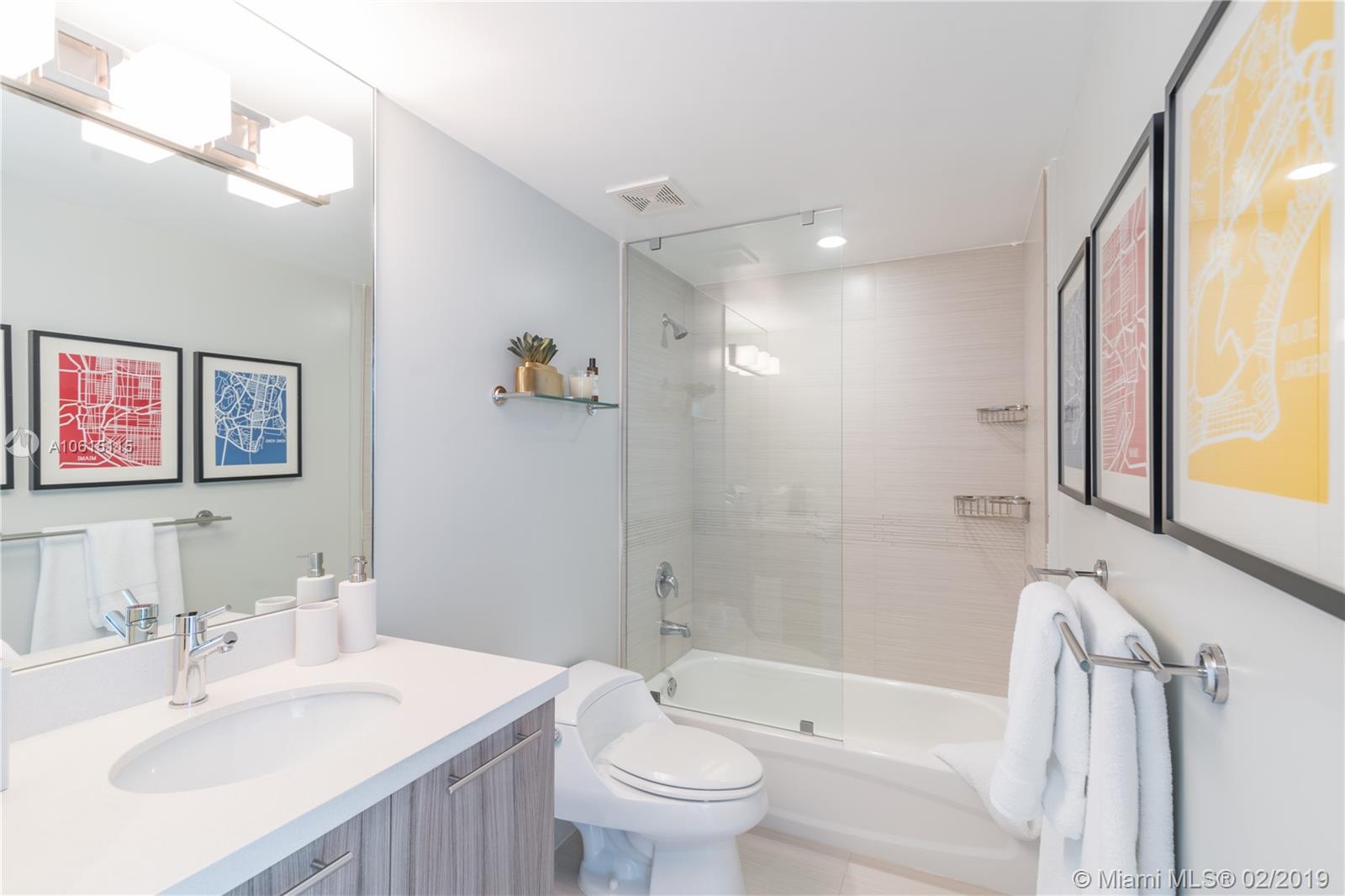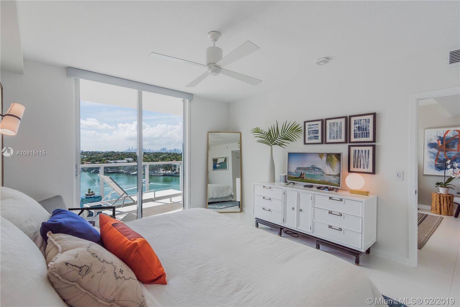 Enjoy magnificent Bay, Intracoastal and Miami Skyline views from every room of this beautifully designed 2BD 2BTH located on the bay. Unit features split floor plan with porcelain floors throughout, custom designed eat-in kitchen with quartz counters, Italian cabinets, Bosch appliances, Full size washer and dryer. Oversized, wrap around balcony ideal for entertaining, relaxing and watching incredible sunsets. Nest Smart system, window shades and built-in closets in every room. Unit is being sold turnkey. Eden House is a secured, boutique building offering great amenities: fully equipped fitness room, pool, hot tub, cabanas on the bay, social room, valet and front desk. Centrally located just one block from the beach, restaurants and shops.