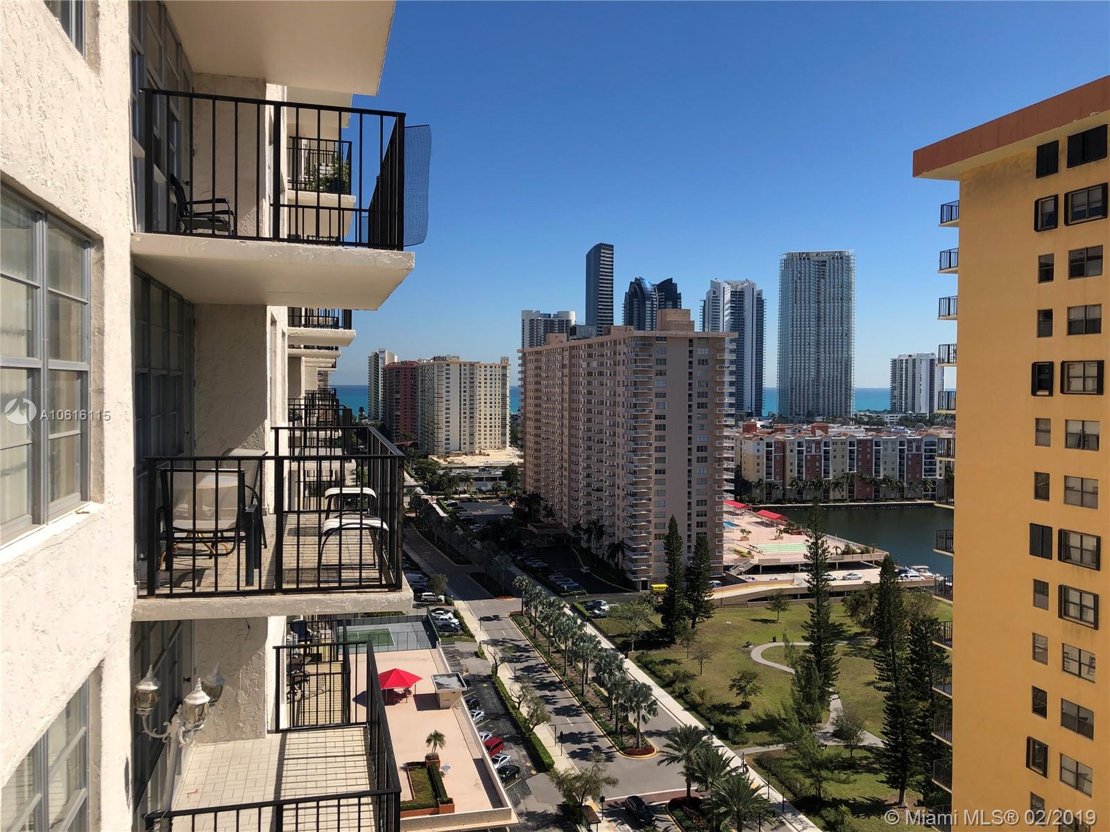 Great deal on this 1bd/1.5bth condo on the 20th floor of Winston Towers 500 Building in Sunny Isles Beach! Beautiful balcony views of the intercoastal waterway and ocean! Low maintenance payment that includes cable, internet, 24 hour security, pool, tennis courts, billiard room and library. Located close to Aventura mall and walking distance to the beach, restaurants, parks, and shopping centers. A+ Elementary-Middle school in district. Free shuttle service provided by city. Priced to sell! Easy to show!