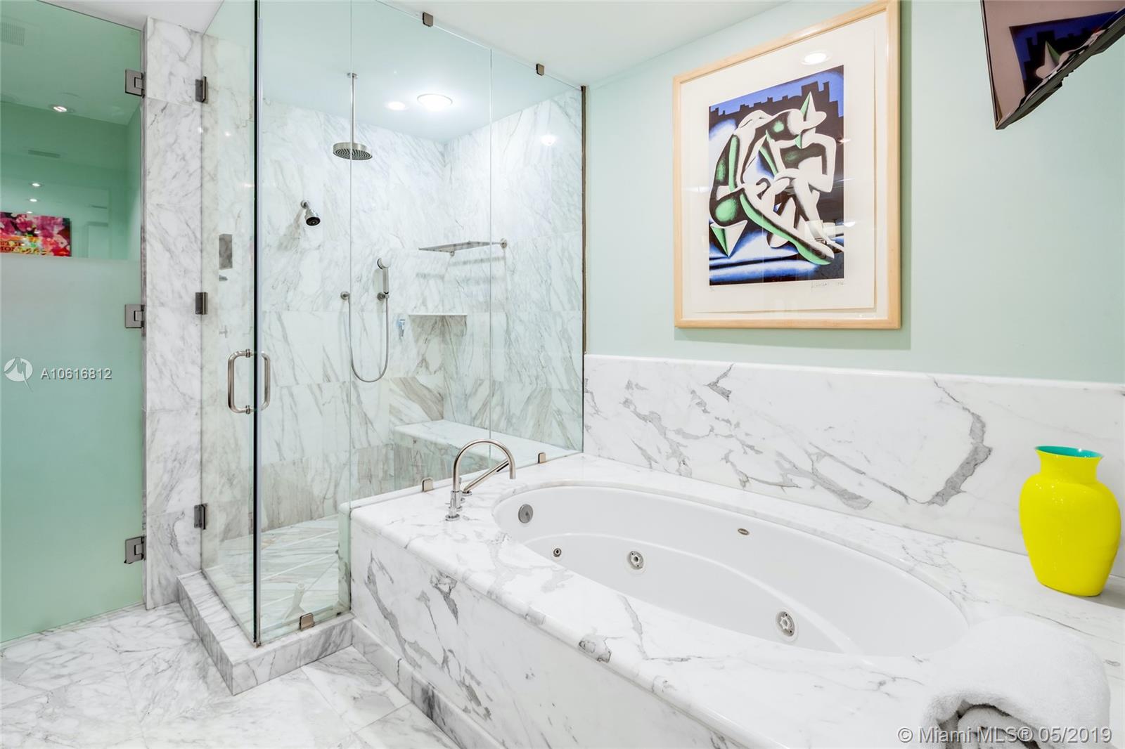 This masterfully designed Penthouse boasts 9.5’ floor-to-ceiling windows framing sweeping bay/sunset views. The customized floor plan features the only expansive gourmet kitchen available in this line, w/12 ft marble and stainless island, Miele, Sub-Zeros and Snaidero lacquered cabinets. Sophisticated master suite features a spacious custom closet and luxurious bathroom. This highly curated condo also has formal entertaining space and separate family room plus two additional en-suite rooms and features expansive views, 372 btl Sub-Zero wine storage, large slab limestone floors, frosted glass and cherry Lualdi foyer, exquisite built-ins, and custom lighting, sound and window treatments throughout. Enjoy the exceptional lifestyle and state of the art amenities of Grovenor House at its best.