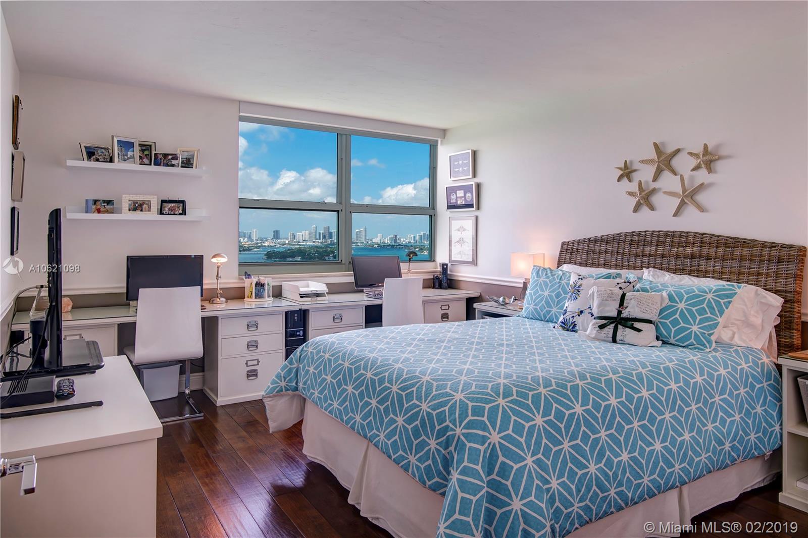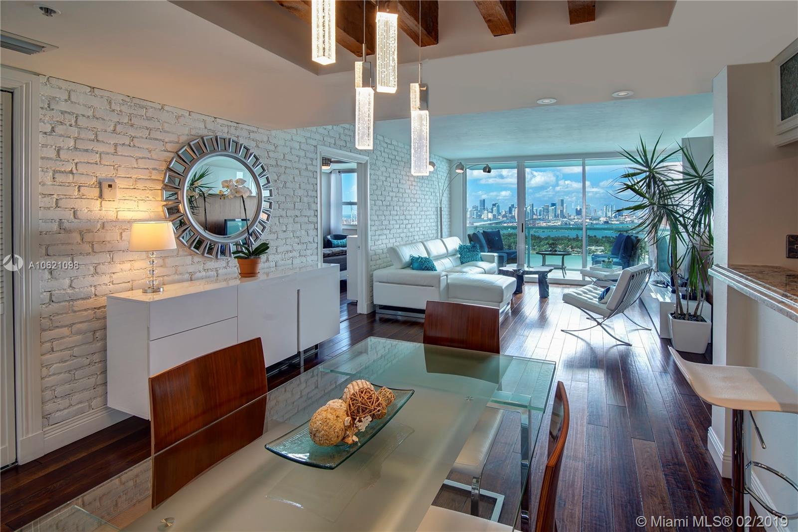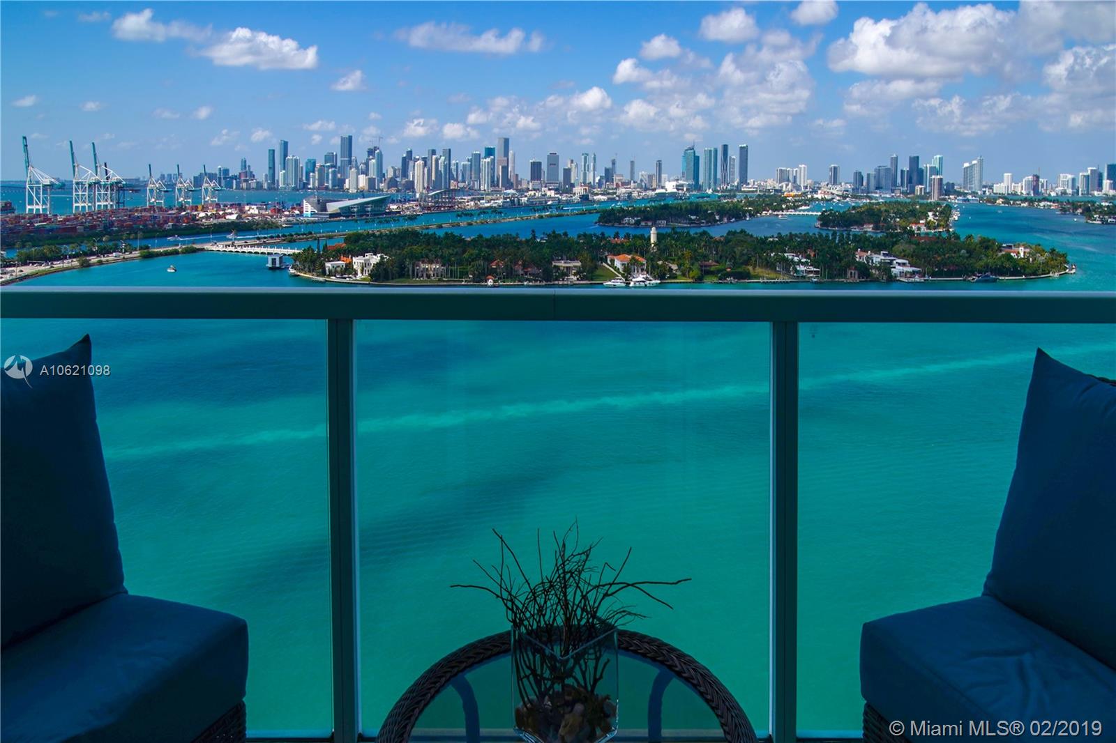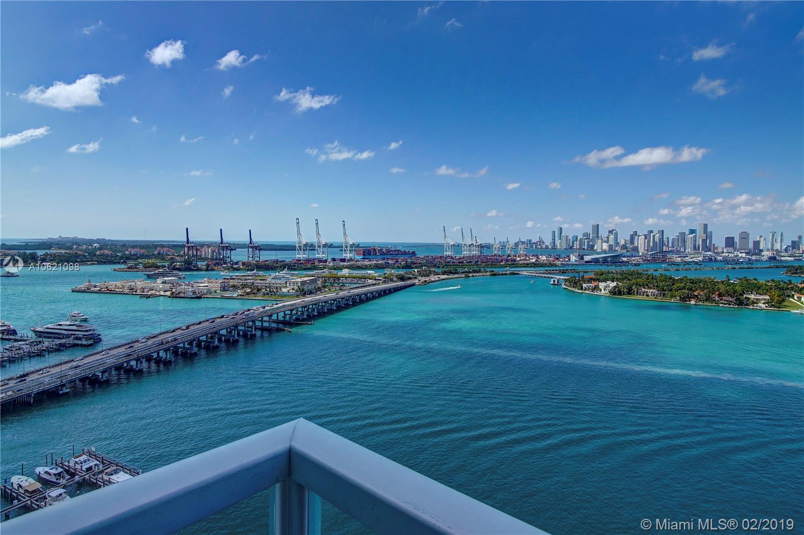 Unobstructed Direct Bay views of Biscayne Bay with the Miami skyline. Sit on your Balcony or Lay in Bed as you watch the multi-colored Sunset or the Cruise Ships depart on their voyages. Furnished Renovated 2 Bedroom Split Floorplan in the Heart of Miami Beach. Amenities include: Tennis Court, 2 Pools, Gym, in-building Hairdresser and Grocery store. Boat Slips available. Two Nearby Grocery Stores: Whole Foods (8 minute walk) and Publix (4 minute walk). Centrally located, the Floridian, is near South of Fifth, West Avenue, Sunset Harbour, and the Beach.