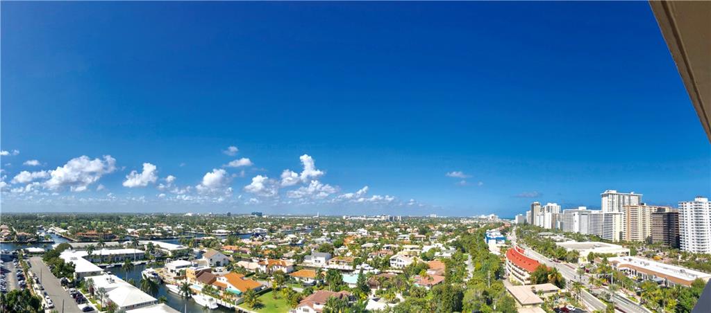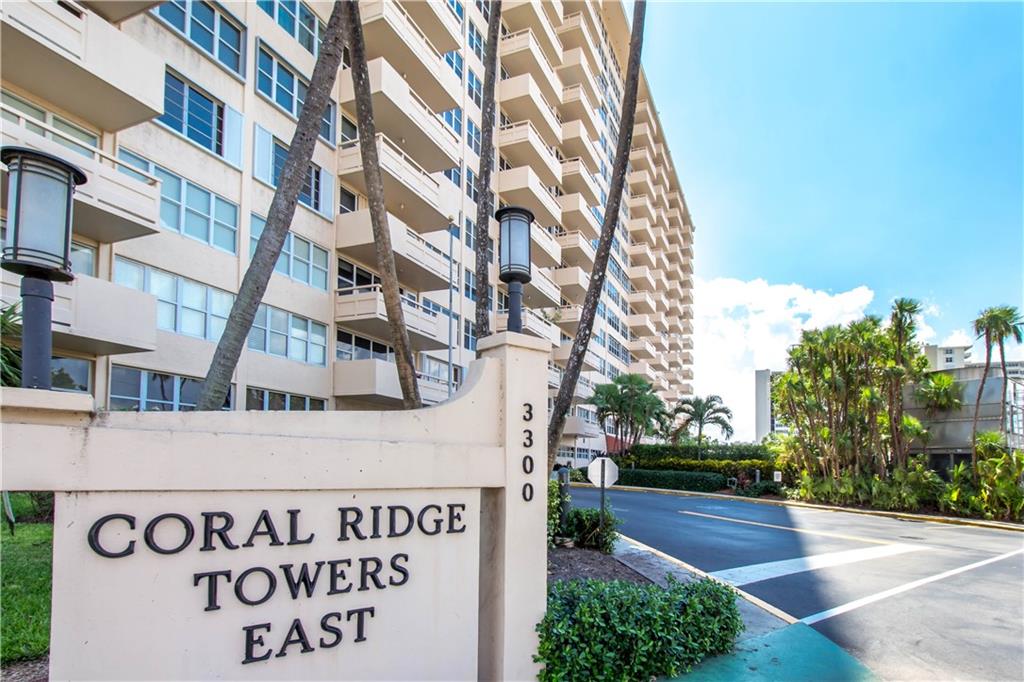 This view will knock your socks off! North West exposure with breathtaking views of the Intracoastal, Ocean, and surrounding neighborhood. Two bedroom two bathroom apartment with tile floors throughout the living spaces. Hurricane impact windows and door installed. Central Air Conditioning. Large private balcony with stunning views. Chic updated lobby and hallways. Enjoy the daily boat parade from the private clubhouse on the Intracoastal. Tropically landscaped garden area with a 30 x 60 heated pool. Located in a beautiful walking neighborhood between the Ocean and Intracoastal. Association states one buyer must be 55 plus, no pets or rentals. Coral Ridge Towers is a fantastic place to call home.