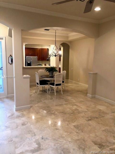 ONE STORY corner villa with den on quiet cul-de-sac. NEW ROOF. 5 year old energy efficient A/C and 3 year old water heater. Hurricane shutters for all windows and doors. Immaculate condition with marble floors and Corian kitchen counter tops in the kitchen. Over-sized backyard. Short walk to lovely community pool. Two (2) dogs allowed with breed restriction. Beautiful Clubhouse contains a gym, tennis courts, etc. A full service luxury community convenient to the Beach, restaurants and shopping.