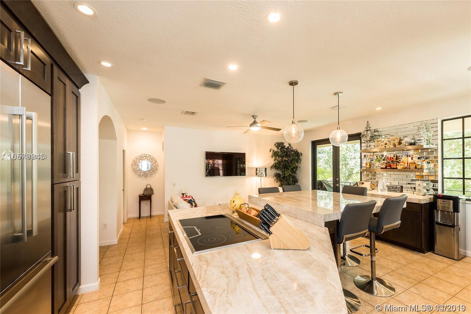 ***REDUCED!!!!***Beautiful Home! Great opportunity, perfect home for entertaining. 4 Bedrooms 2.5 Baths, Recently remodeled with a unique one-of-a-kind kitchen. Wood Cabinets, Oversized Quartzite Island, High end Thermador appliances, chefs style refrigerator and cook-top with down draft. Custom designed Bar with glass backsplash. Home wired throughout for sound system, built in entertainment system with room for a 75" TV. Master Bath remodeled featuring Marble Spa style shower. All closets custom built. Elevator Ready, best Weston location, walking distance to excellent restaurants, shopping, Town Center , A+ Schools - You've never seen anything like this!