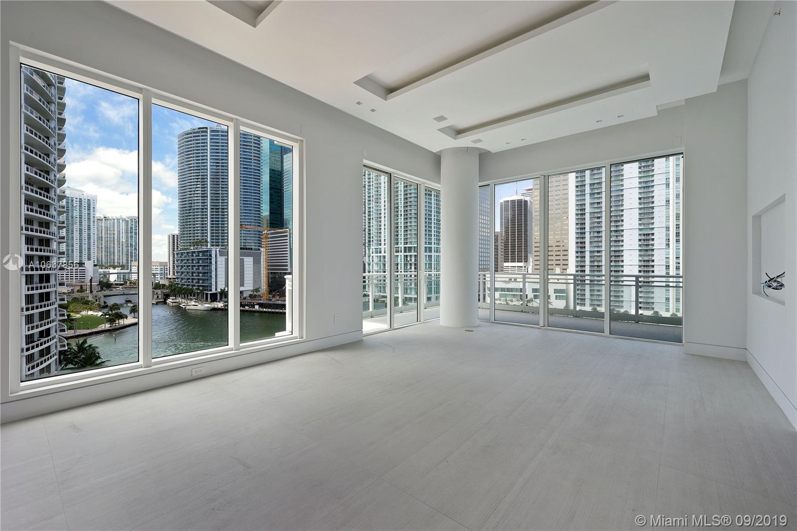 JUST REDUCE COMPLETELY RENOVATED UNIT. Private elevator foyer, Ceilings of 12 ft. Amazing Bay and Skyline views from every angle, each bedroom with impact sliding door to balcony. Elegantly finished with, contemporary , Italian cement Grilio Bianco porcelain floors throughout, including balconies. Total ceiling change Luminaires, Baseboards of Santa Lucia Brazil, Italian open cuisine Scavolini, with quartz countertops, Bath, Toilets and Bidets de Duravit, Aquabrass faucets and showers. Building in sound system, Italian Poliform closets, Secret Italian doors without Barausse Frame, shower bath Mirror, glasses indirect light throughout of the unit, storage room next to the unit and two parking spaces.