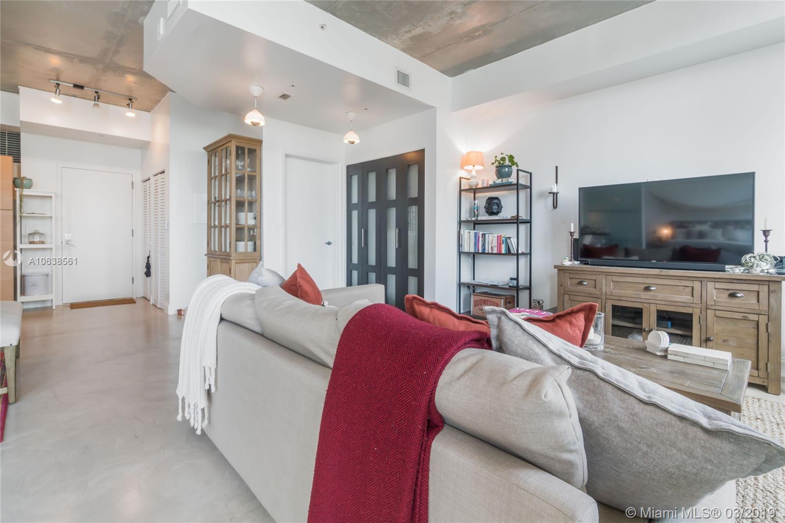 Enjoy loft living in Edgewater at boutique Uptown Lofts! Unit 503 is a two bed/two bath legal floor plan converted to a large 1 bed/2 baths (easily converted back to a 2/2). The master bedroom is divided with chic frosted glass sliding doors for privacy. This impeccable condo boasts polished concrete floors, 10' ceilings, a modern Euro style kitchen and en suite WD. The spacious balcony offers serene garden views, Bisc. Blvd and a glimpse of the bay! Uptown Lofts is a great building with only 66 condos but offering a secured lobby with 24hr. security, covered parking, fitness center and pool. Located in the trendy Edgewater area it is close to Brickell, the Adrienne Arsht center, Midtown Shops and the Design District. Great tenant in place through Oct. (Realtors read Broker remarks!).