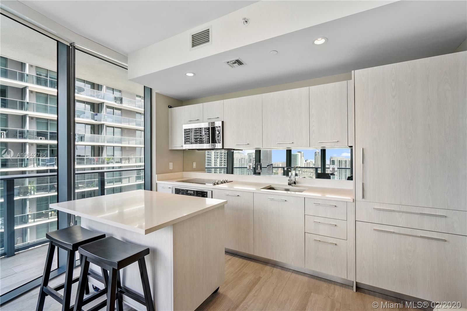VACANT, EASY TO SHOW -Furnished 2 bedrooms + Den Corner unit with a large wrap-around balcony, porcelain wood floors with matching deck flooring, built out closets, window treatments with blackout shades in bedrooms, mirrored kitchen backsplash enhancing view, floating kitchen island, tub/shower glass enclosure. Parking space is conveniently located on 3rd floor. Best location in the City, amenities featuring 2 pools, jacuzzi, conference room, theater room, kid’s play room, business center, 24hs security, valet and concierge, Equinox gym located in the complex, roof top pool with panoramic view. High speed internet, wireless access in all common areas, basic cable. Ideal for professionals of Brickell. Walking to Brickell CityCenter Mall, Mary Brickell Village, best restaurants & cinema.