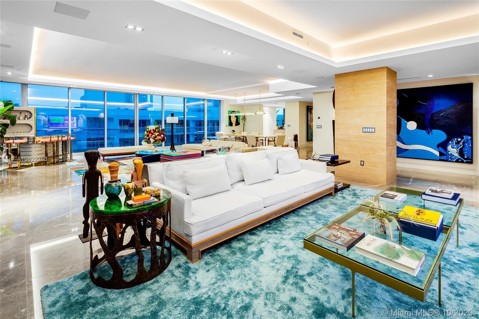 Located on the South Corner of Fendi Chateau, this stunning unit is luxury living at its finest. The flow thru unit features exquisite marble & oak wood floors, an amazing great room & dining space with panoramic ocean & city views and a large family/media room. The sleek gourmet kitchen sports top of the line Gaggenau appliances, Fendi designed cabinetry & private breakfast area. Gorgeous oceanfront master suite w/seating area, terrace access & amazing master bath w/Calacatta marble walls/floors, sunken spa tub, glass-marble rain shower & voluminous walk-in closet. An expansive 1,885 SF wrap-around terrace w/summer kitchen extends the entire unit to enjoy breathtaking sunrise/ocean and sunset/city views. Fendi Chateau ultra-luxury concierge services & amenities complete this offering.