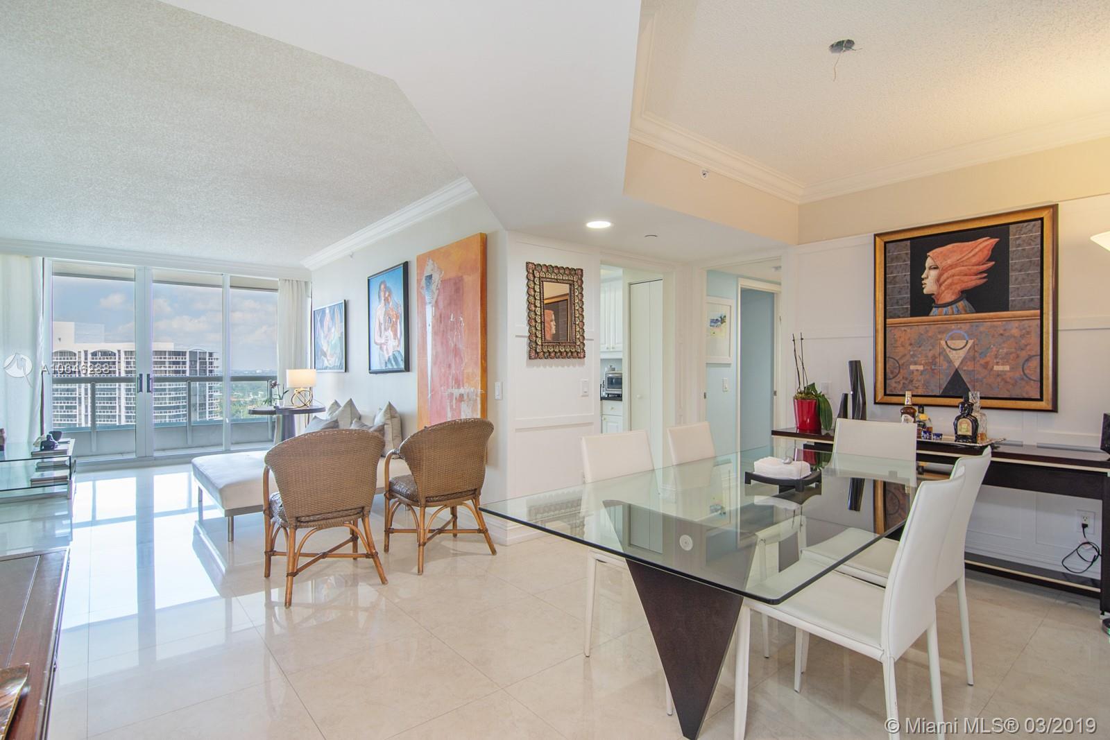 BEST PRICE IN THE BUILDING! 2 BEDROOM 2 BATH, 1505 SQFT. MARINA AND CITY VIEWS. MARBLE FLOORS IN SOCIAL AREAS. KITCHEN WITH MARBLE COUNTERTOP. **2 ASSIGNED PARKING SPACES**HURRICANE SHUTTERS. WORLD CLASS AMENITIES SUCH AS FITNESS CENTER AND SPA, POOL, TENNIS, PLAY ROOM, 24 HRS. CONCIERGE SERVICE AND VALET.GREAT LOCATION CLOSE TO SHOPPS,RESTAURANTS, GUKFSTREAM RACETRACK & CASINO, ETC. !!!!!!