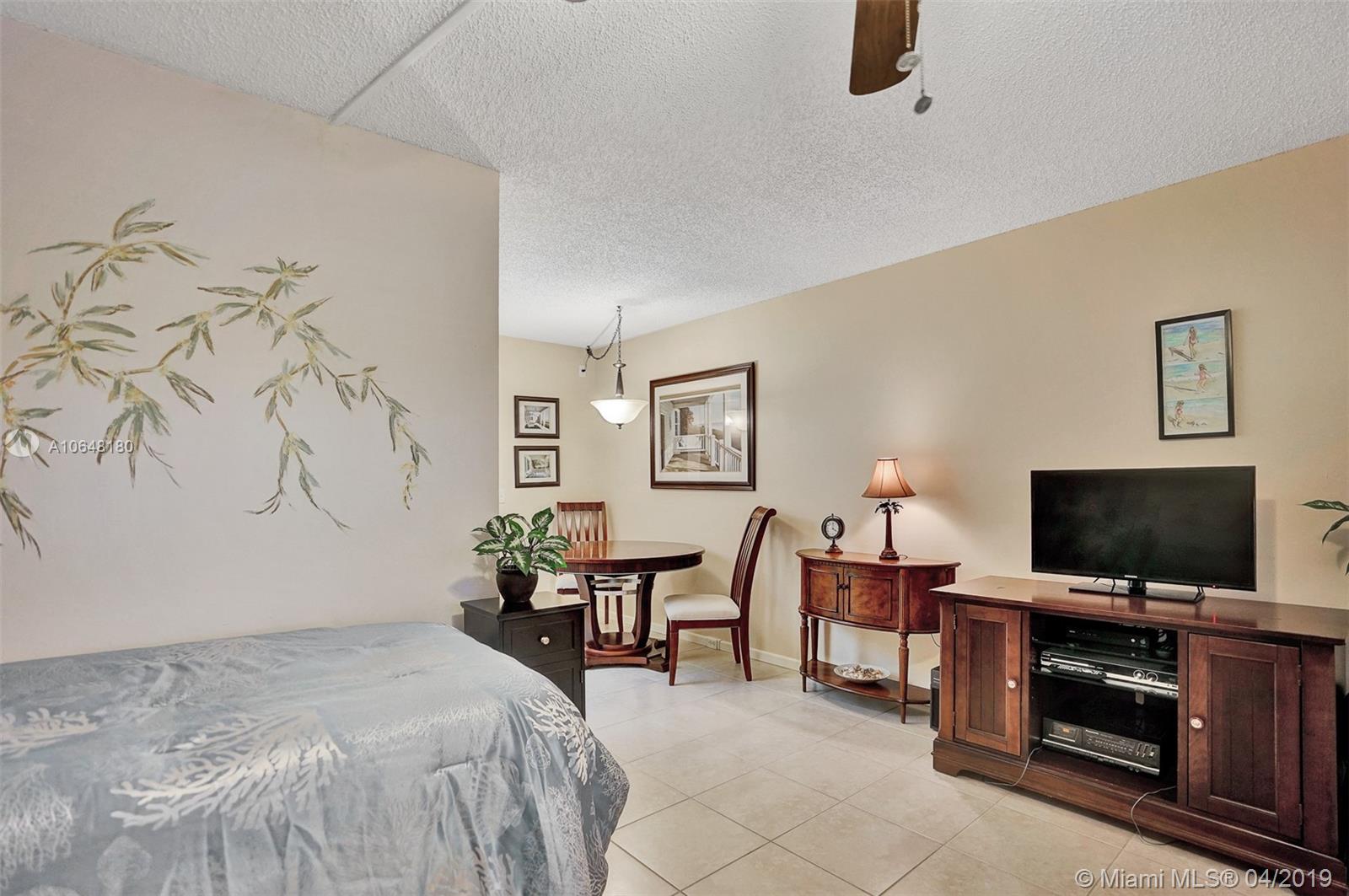 Adorable 1 bed/ 1 bath conveniently located on the first floor. Spacious living room and bedroom with lots of closet space. Ceramic tile throughout the apartment with ceiling fans in the living room and bedroom. Screened patio. Newer water heater, A/C and flooring. Bright, clean, and ready for you. HOPA Community with Million Dollar Clubhouse, 2 Fitness Centers, 24 Hr. security, 8 swimming pools, bus transportation, tennis, movies, theatre, shows, billiards, pharmacy, cafe, golf, and much more. Near the new Pembroke Gardens shopping and dining and Pembroke Lakes Mall.