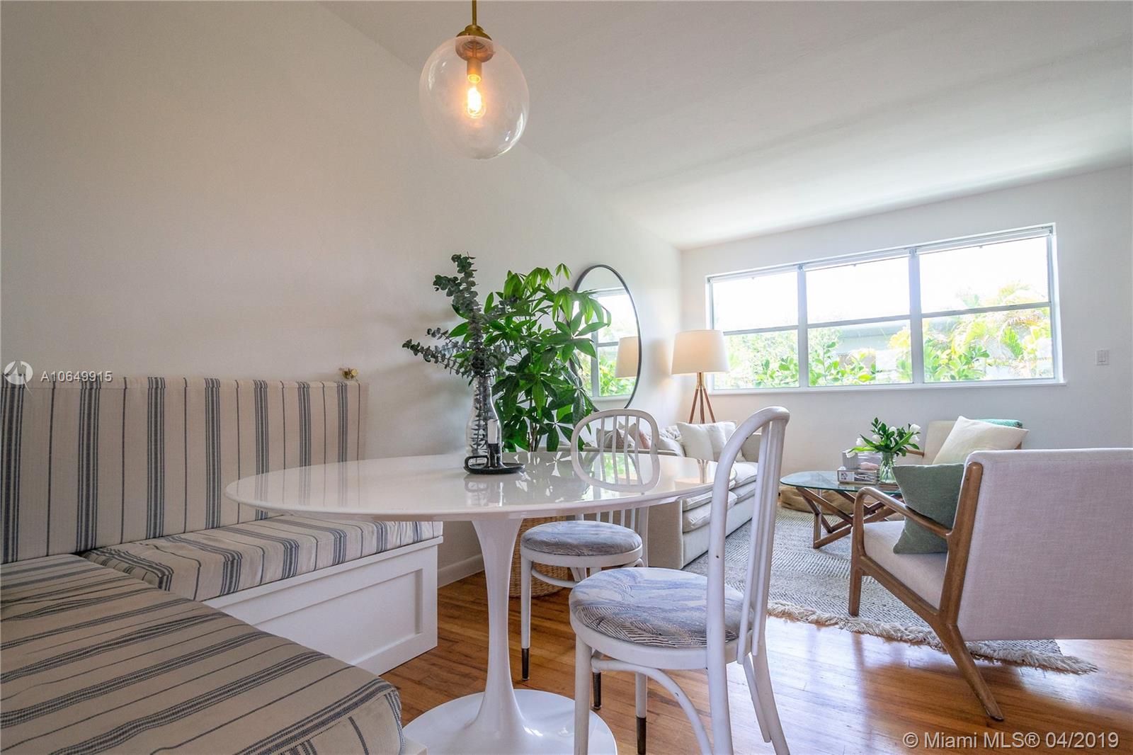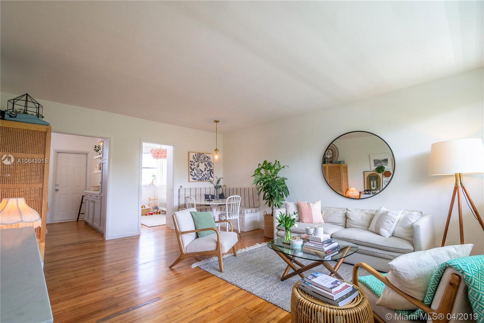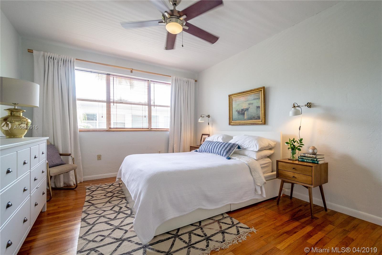 Charming Waterfront MiMo building with large pool offers a truly amazing 2/1. This one-of-a-kind residence features completely renovated kitchen with exquisite design that was featured in The New York Times! And with updated bath & beautiful wood floors, this clean & cared for home is absolutely a gem. With waterfront pool, barbecue grills & lush green landscaping this property embraces the North Beach lifestyle. Located on one of Miami Beach's waterways you can easily launch a kayak or SUP & navigate the NoBe waters from here. The building is gated & has already passed its 40-year recertification. With new roof, there is no assessment in the forecast either! The location is second to none with markets, restaurants, & more walking distance! Call us for your tour of the property today!