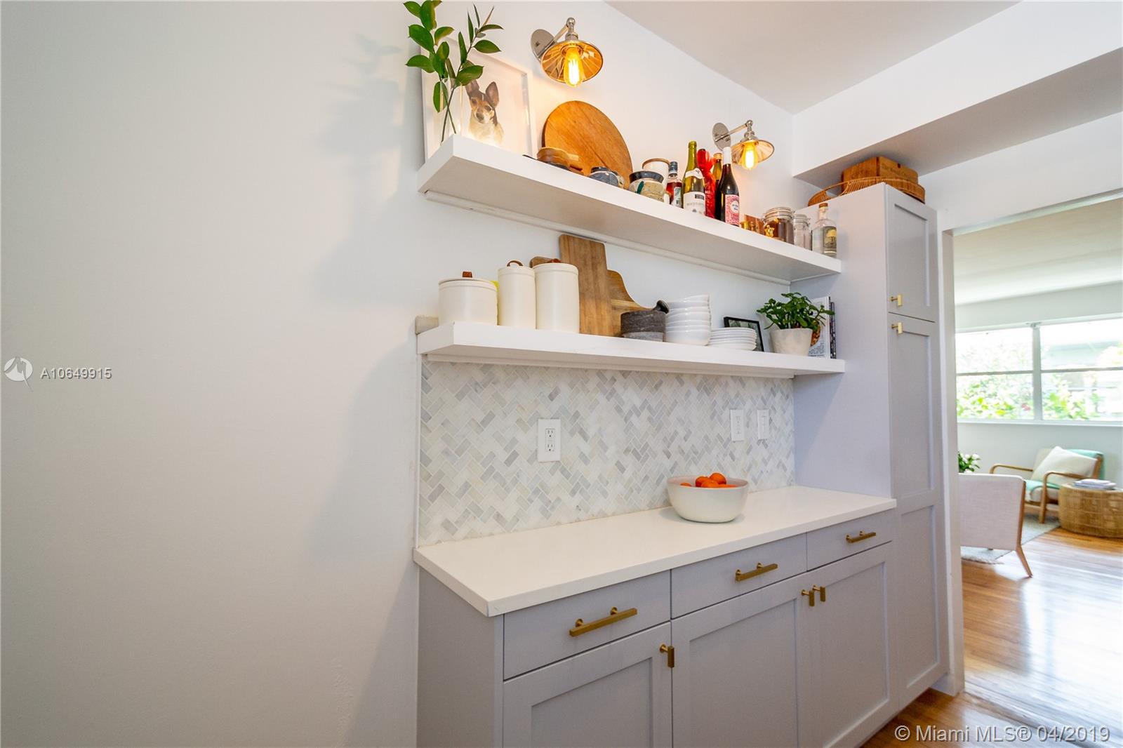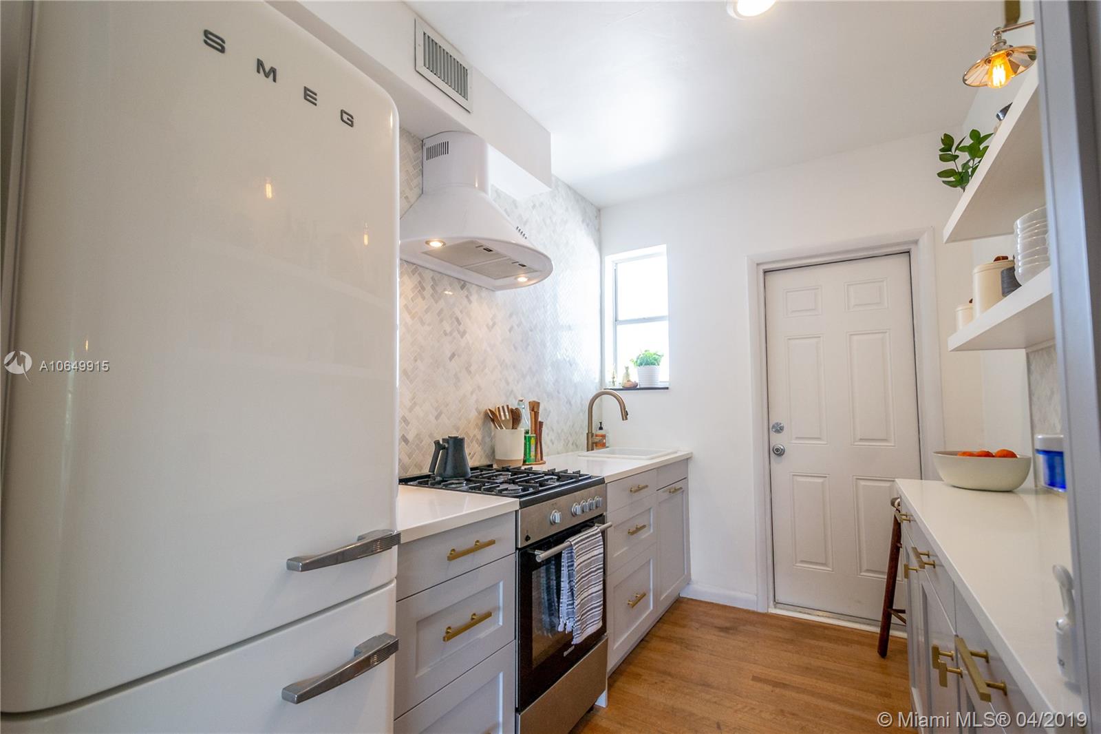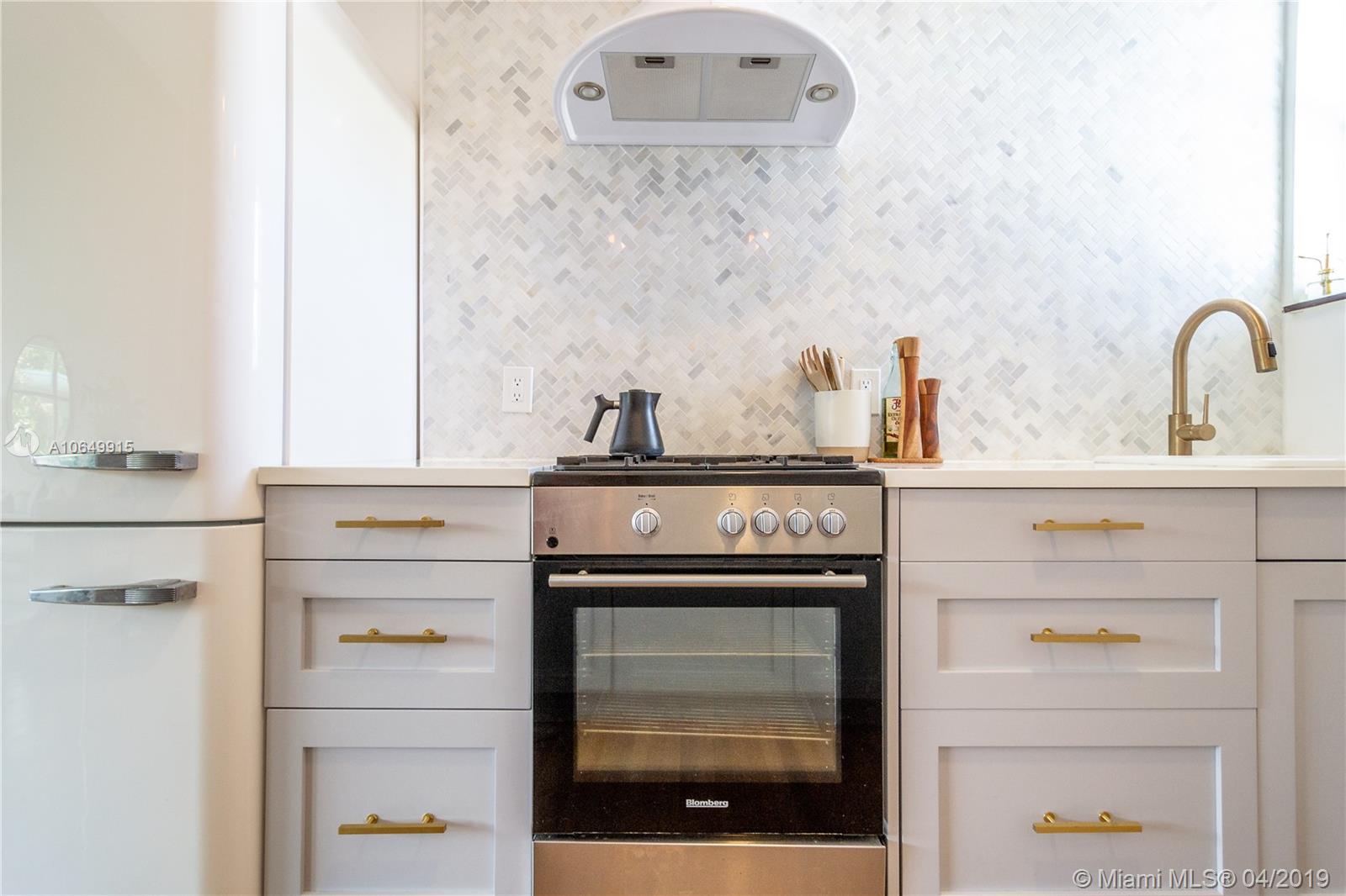 Charming Waterfront MiMo building with large pool offers a truly amazing 2/1. This one-of-a-kind residence features completely renovated kitchen with exquisite design that was featured in The New York Times! And with updated bath & beautiful wood floors, this clean & cared for home is absolutely a gem. With waterfront pool, barbecue grills & lush green landscaping this property embraces the North Beach lifestyle. Located on one of Miami Beach's waterways you can easily launch a kayak or SUP & navigate the NoBe waters from here. The building is gated & has already passed its 40-year recertification. With new roof, there is no assessment in the forecast either! The location is second to none with markets, restaurants, & more walking distance! Call us for your tour of the property today!