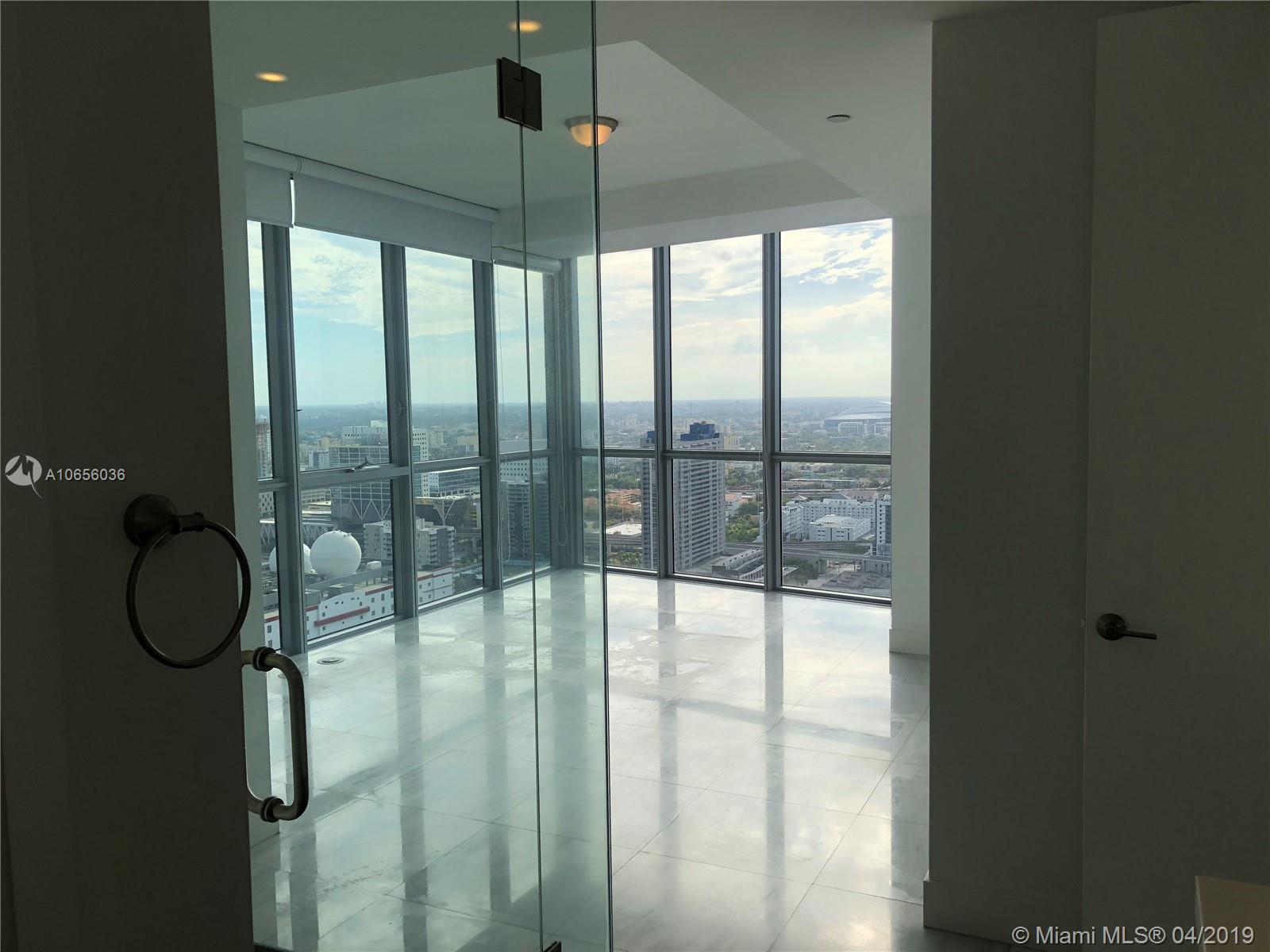 Stunning 2 bedroom 2.5 bath corner residence with wrap around glass walls with beautiful views of both the city, Biscayne Bay, and Miami Beach! Private elevator access into condo foyer. Open kitchen perfect for entertaining guests with high end zebra wood kitchen cabinetry and Viking appliances. Italian porcelain flooring throughout unit. Spacious master bedroom with glass walls giving you a view to the city, custom walk-in closet, and bathroom. Take advantage of all the First Class Amenities offered: Concierge, Valet, Two heated pools, Full service Spa, Fitness center, Yoga studio and Tempo Miami, an all-suite boutique hotel-restaurant/bar/lounge. Just a few across from the Frost Museum and Perez Art Museum Miami and just steps away from American Airlines arena and Adrienne Arsht Center.