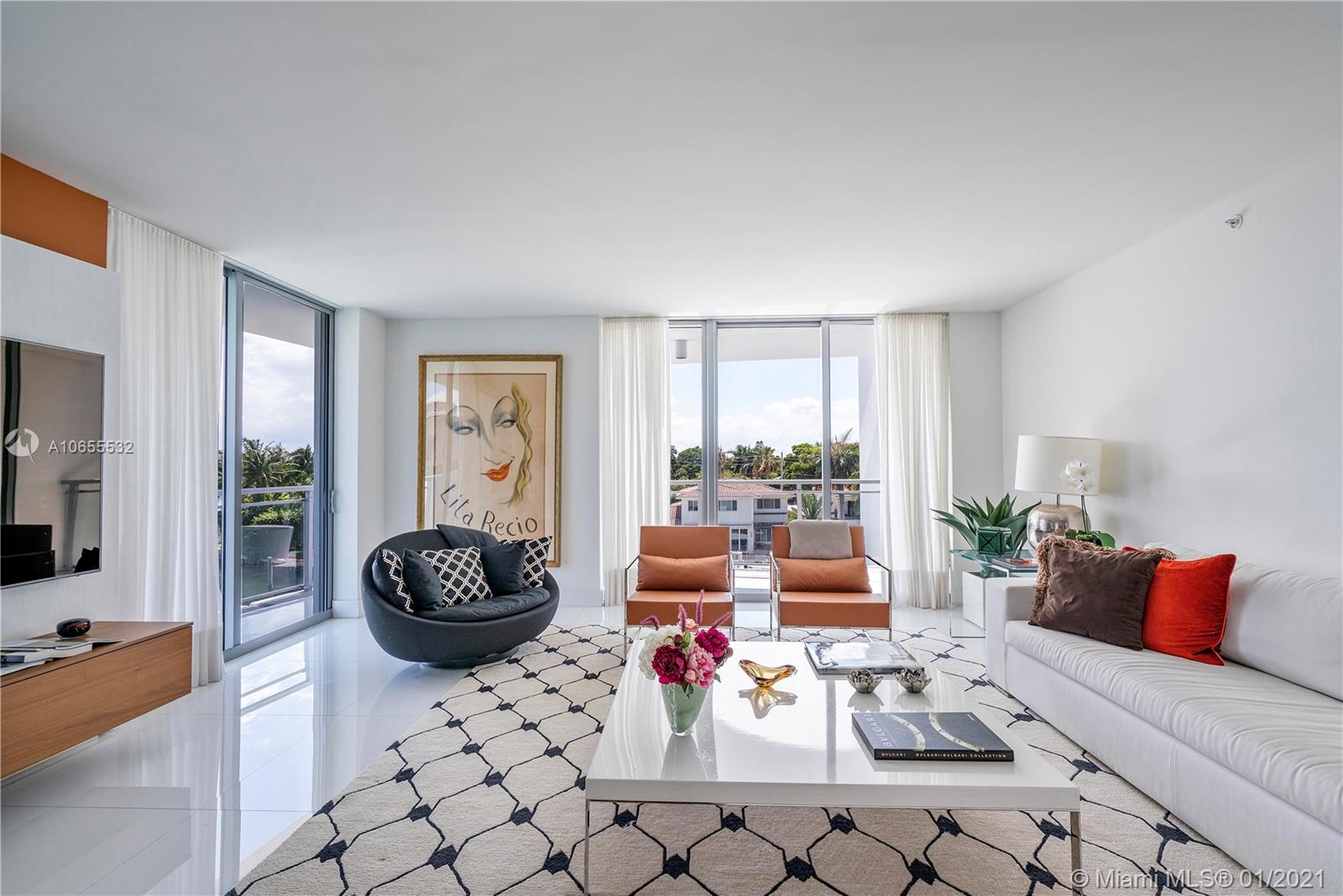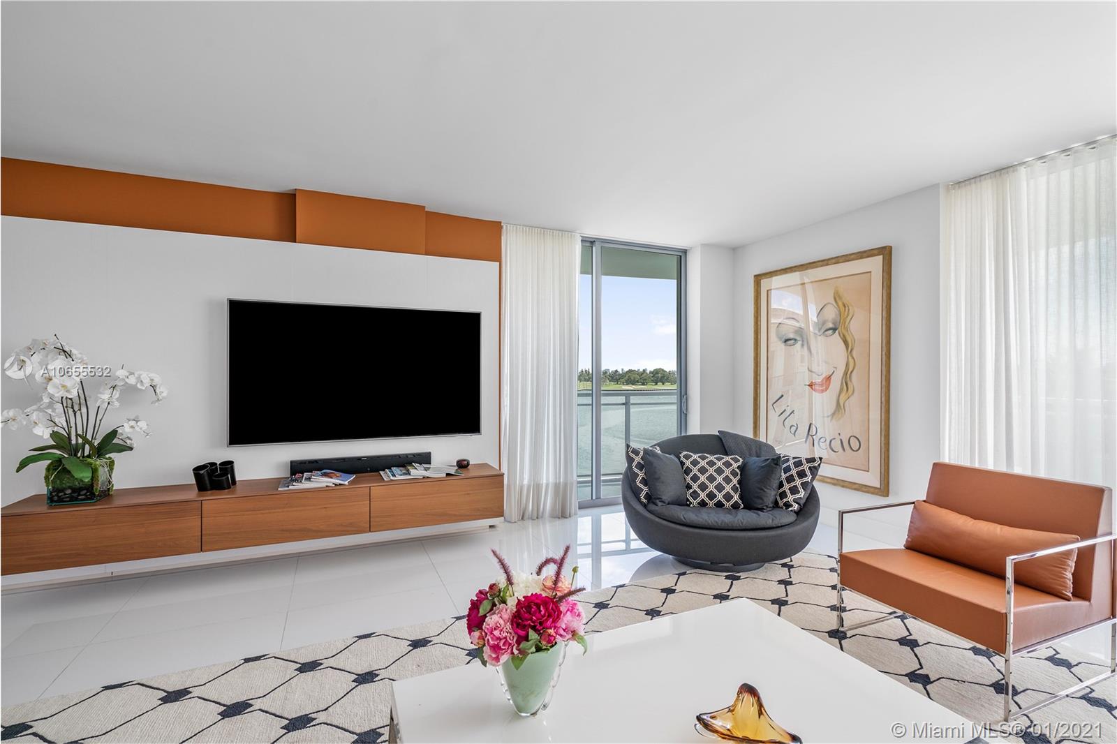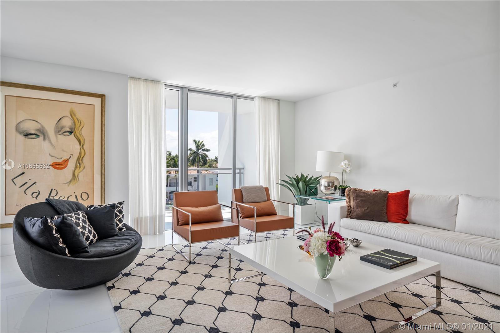 Very Rare "01" Line at Riva Bay Harbor. Professionally Decorated and Furnished. Beautiful views of Indian Creek Golf Course and Bay. 3 Bedrooms plus 3.5 Bathrooms. 2,347 sq ft of living area plus 729 sq ft of terrace as per Floor Plan. Building has underground parking, Sam Robin designed lobby, 24hr security, valet parking, fitness center, and a rooftop pool & spa with spectacular views. Walking distance to Beach & Bal Harbour Shops. Priced to sell! Bring your best offer!
