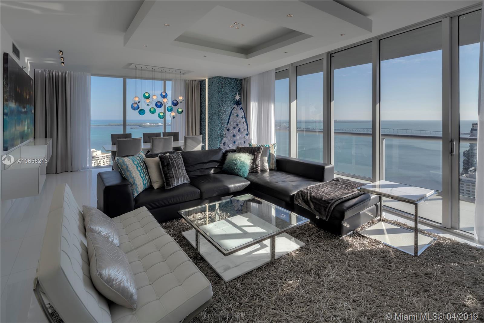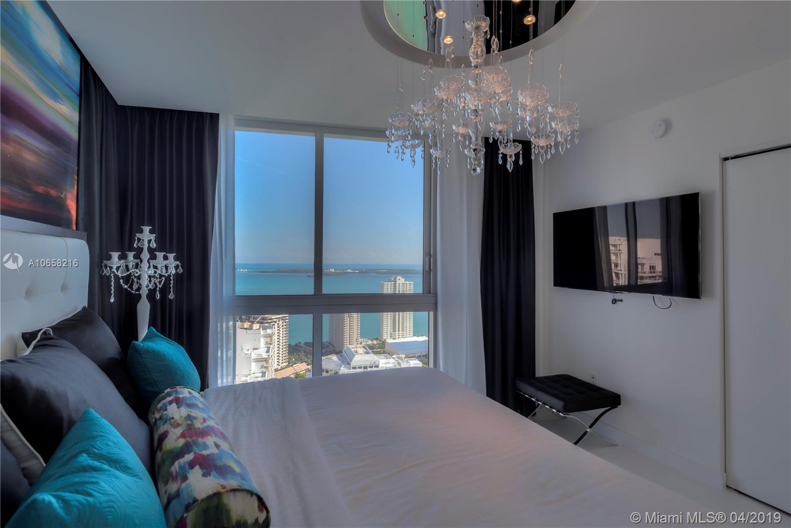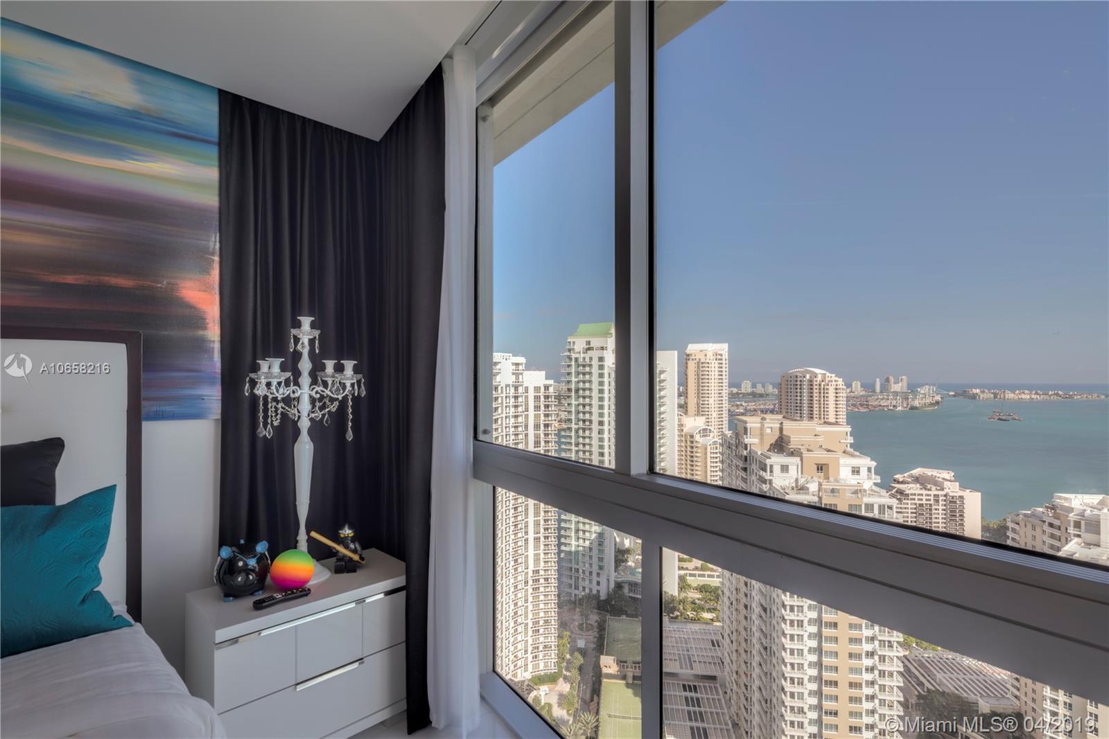 A modern and meticulously upgraded waterfront residence with unique designer finishes. Top-of-the-line details throughout including Carrara marble counters, custom LED lighting, mosaic tiling and marble walls, built-in sound system, master bath with rainfall shower and soaking tub. Desirable corner unit with unobstructed bay views and spacious balconies. Includes two parking spaces. Icon Brickell offers full-service amenities, spa and newly renovated pool deck - close to Brickell City Centre.