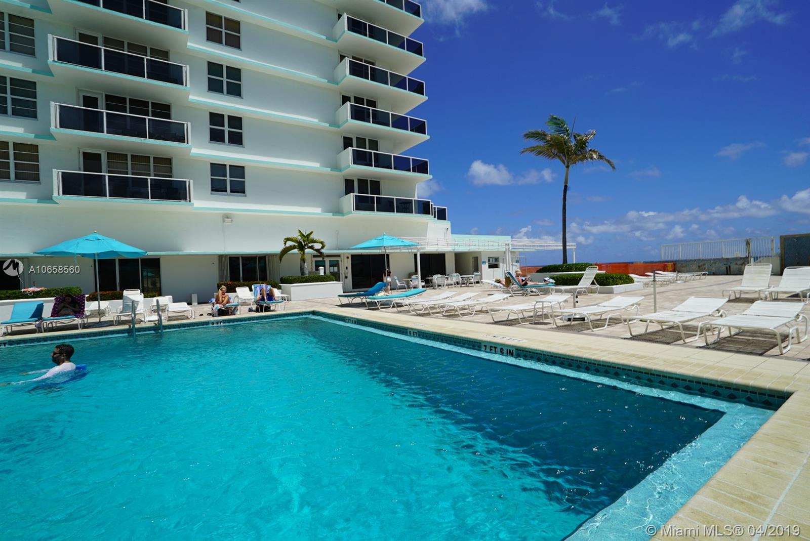Substantially remodeled oceanfront apartment. New hurricane-proof impact windows. Enjoy ocean view over swimming pool. Use own pool as well as pool at Westin Diplomat next door. Great for primary residence or for investment income producing property. Best floor plan: split bedrooms, open kitchen. Very popular building, can lease it from day 1. Pet friendly. Enjoy remodeled amenities in a resort type setting. Great lifestyle with many activities in nearby area: shopping, restaurants, casinos, 2 airports, 2 ports, well developed infrastructure.