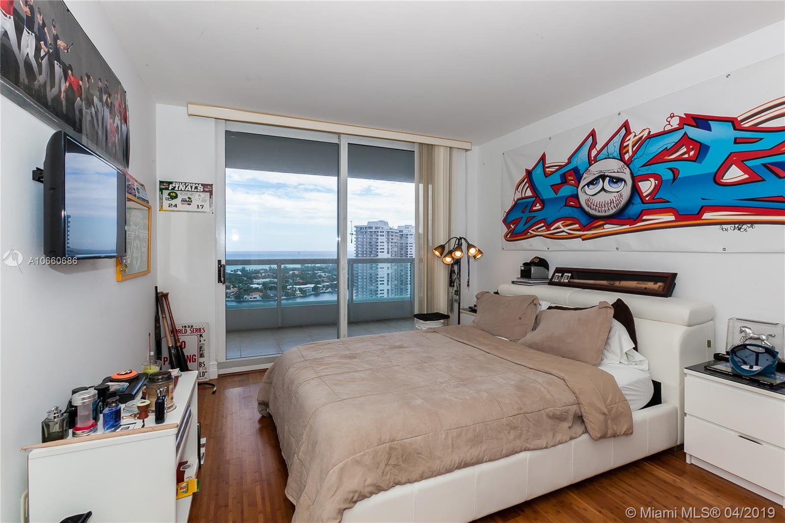 Best price for this amazing condo at the prestigious South Tower at The Point in Aventura. Beautiful views of the ocean and the intracoastal. Rarely available flow through condo featuring two uniquely large balconies. Sought after floorplan and only line that provides a very convenient den. The master bedroom includes a his & hers walking closet, a large bathroom, and access to the east balcony from where you can enjoy direct ocean views and sunrises. 5 star amenities such as three pools, tennis courts, and THE MOST LUXURIOUS spa and fitness center in Aventura. Great location close to the Aventura Mall, Marina, Parks, Sunny Isles Beach, and houses or worship.
