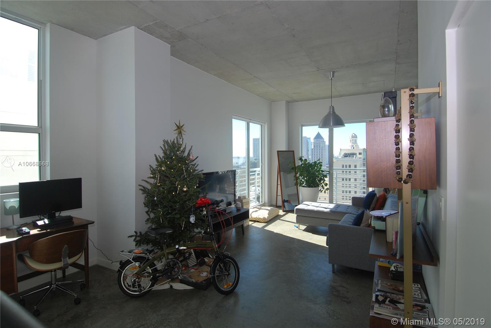 CORNER UNIT! Spacious and bright 2/2 loft with 10 feet high ceilings with City views. Unit comes with washer, dryer, dishwasher, sealed Concrete Floors, High Ceilings, Floor to Ceiling Impact Windows, Private wraparound terrace, 2 Full Baths, European Cabinetry, Stainless Steel Appliances, Granite Counter tops. Building offers full amenities, a roof top pool and expensive gym, with Sauna and Jacuzzi, community room with wi-fi. Metromover at your doorstep. Walking distance to AA Arena, Bayside, Miami-Dade Community. Easy access to I95 and major expressways. 1 parking.