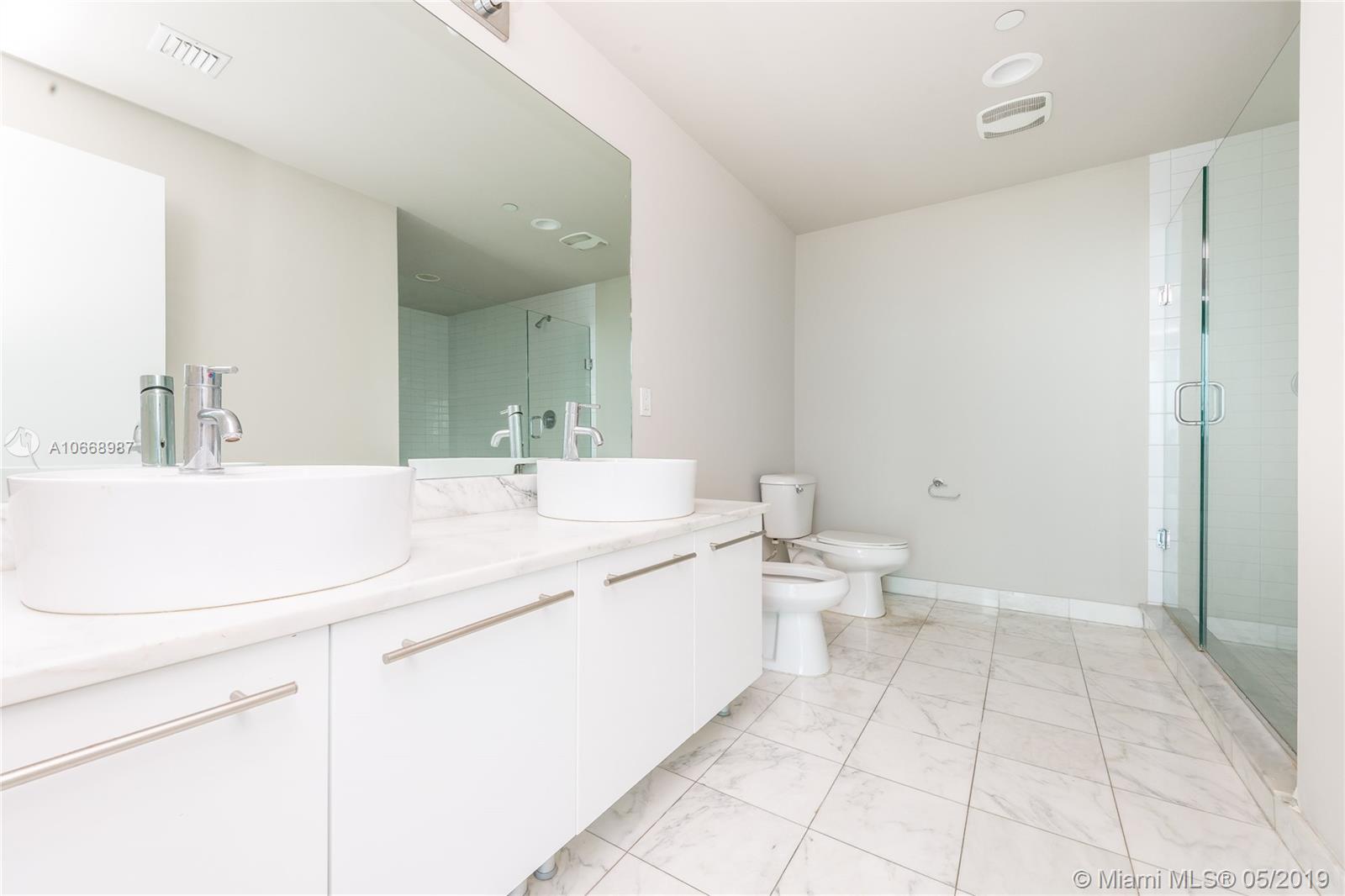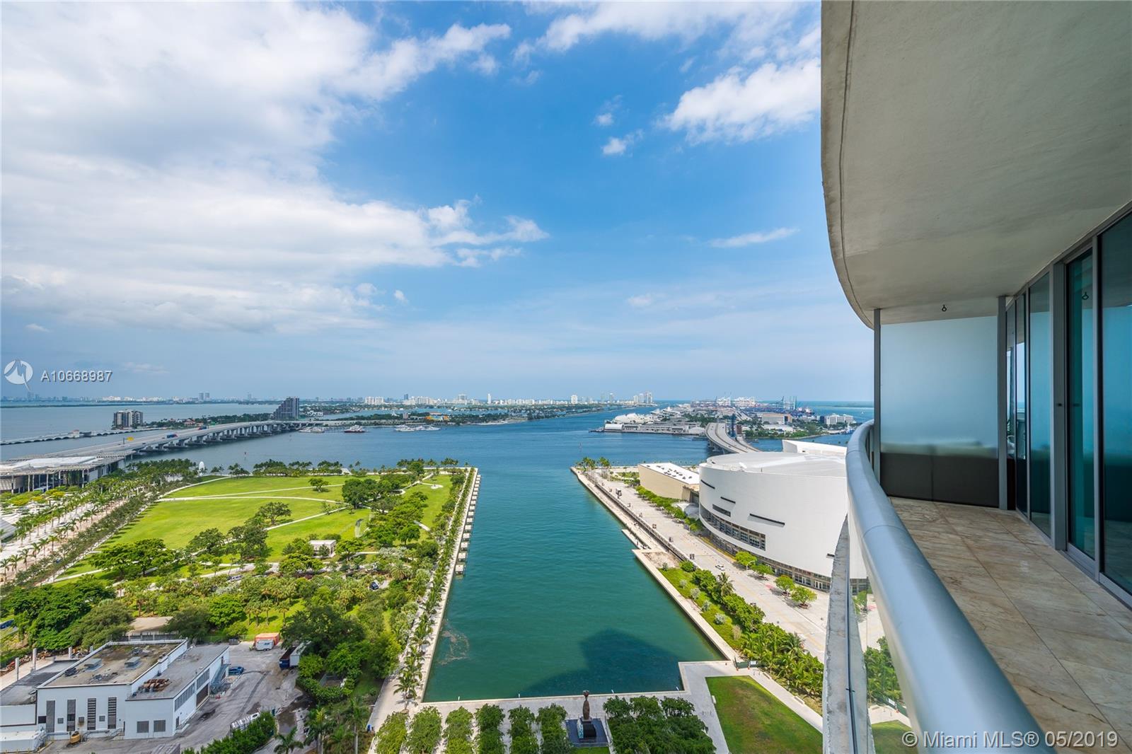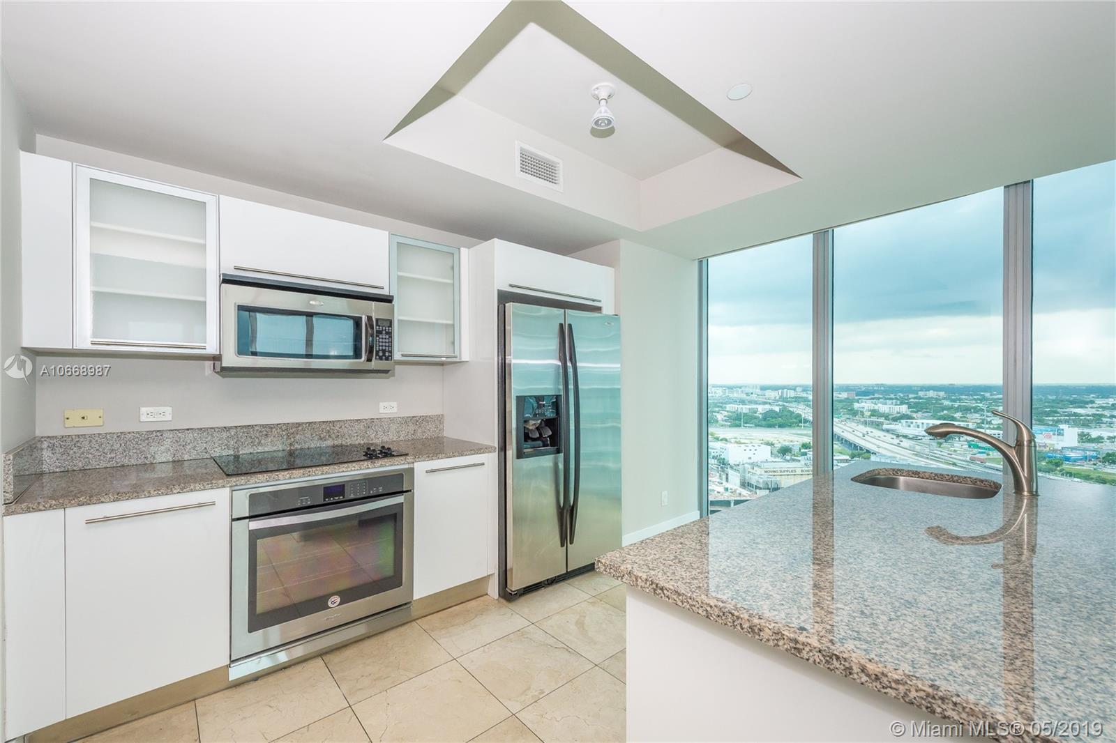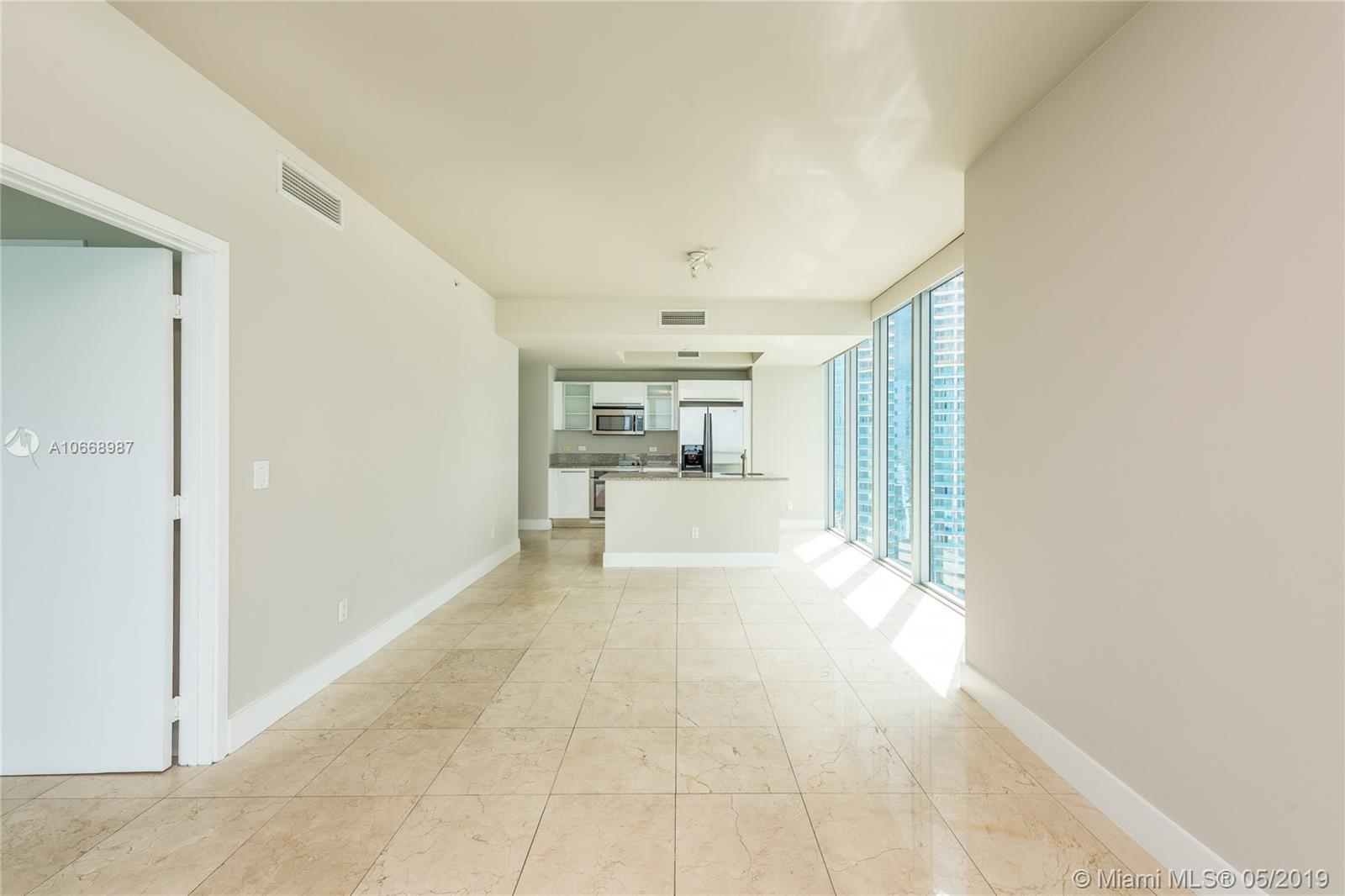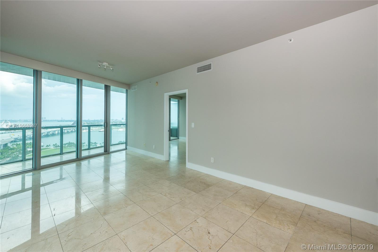 Incredible bay & ocean views from this spacious 2 Bed/2 Bath located directly in front of the American Airlines Arena & Museum Park. This beautiful 1,318 interior square feet downtown condo features sunrise and sunset balconies, stainless steel appliances, washer/dryer, tiled flooring throughout, and walk-in closets in each bedroom. Includes 1 assigned parking space + storage. Building approved for 5% Down