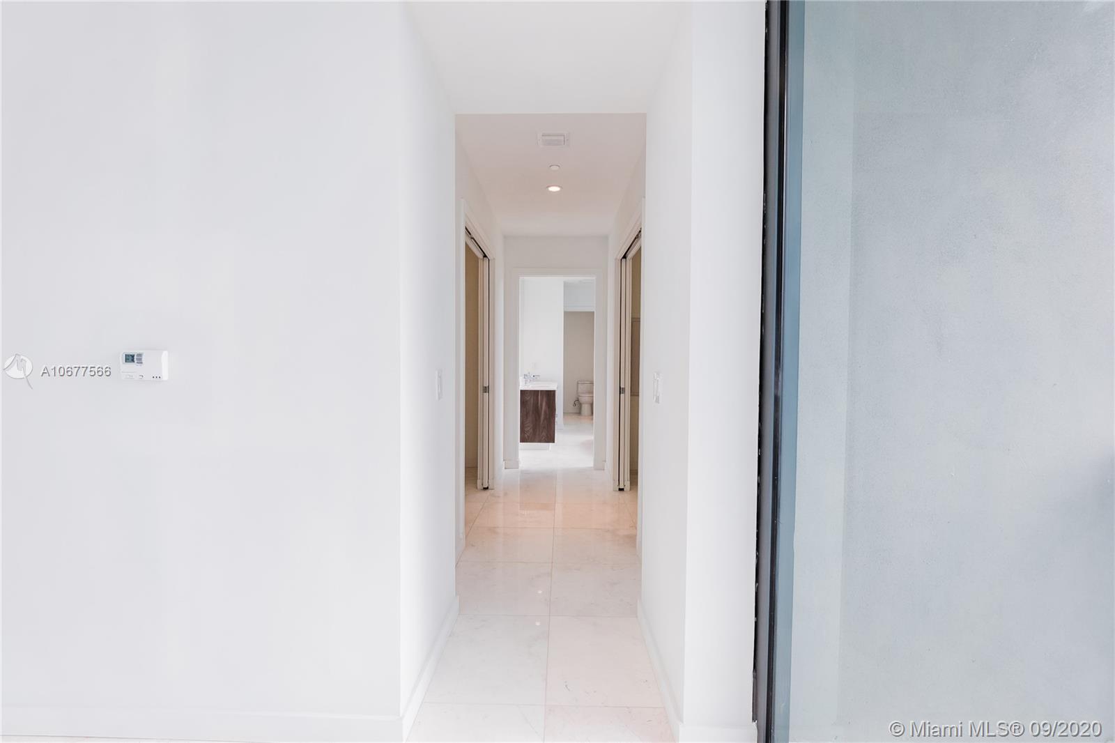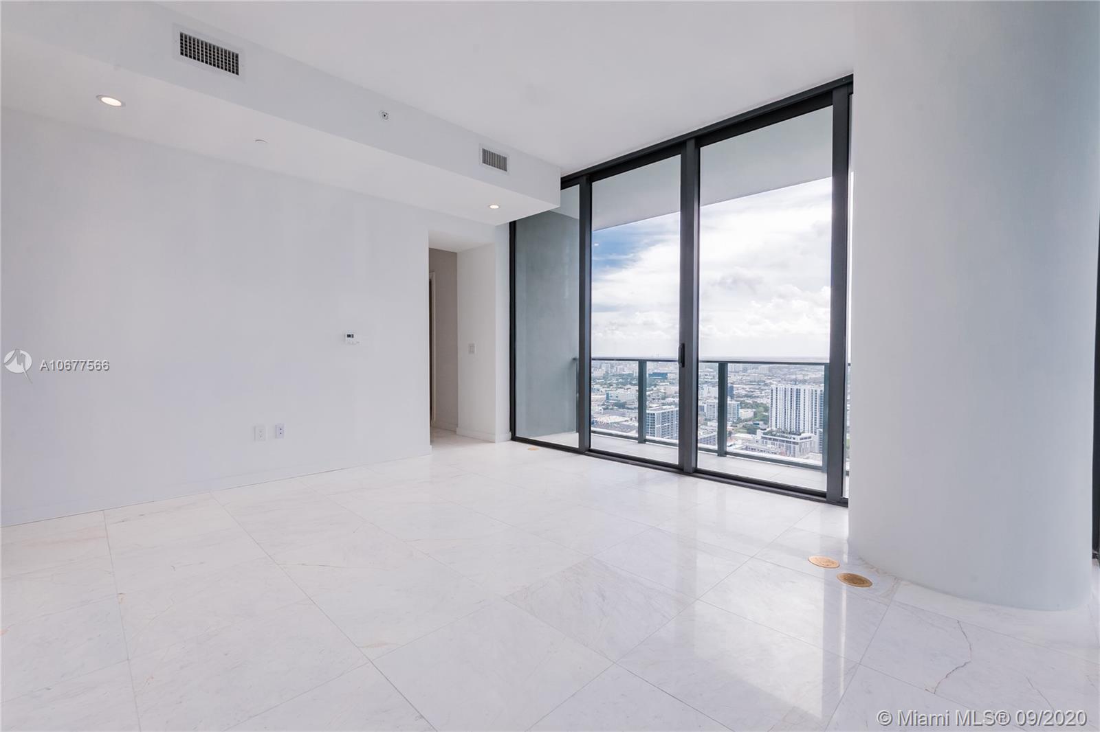 Unique high floor corner unit at Gran Paraiso. Brand new construction, never lived in, with amazing direct water views. This unit features a large floor plan with 3 bedrooms + Den, and a private elevator. Enjoy a 5 star full service building, with Pool, Tennis, Gym, Spa, Bowling... The Paraiso Residences is a private community, offering a world class lifestyle.