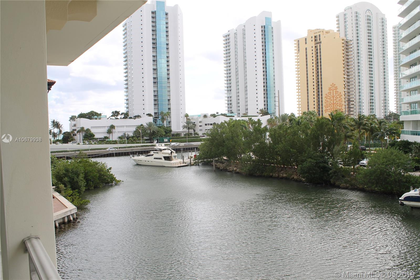 A MUST SEE UNIT at St. Tropez - Beautiful 2 bed + 2 bath + Den Townhome. Model unit professionally decorated and fully furnished. featuring oversized living spaces and amazing canal/partial ocean views. Arrive by car by each in private community dock. This resort style complex features a state of the art gym, Versace themed party room, private library and private beach club. The unit features top of the line appliances. Beach access, concierge, valet. Grade A school district. 1 assigned space + valet.