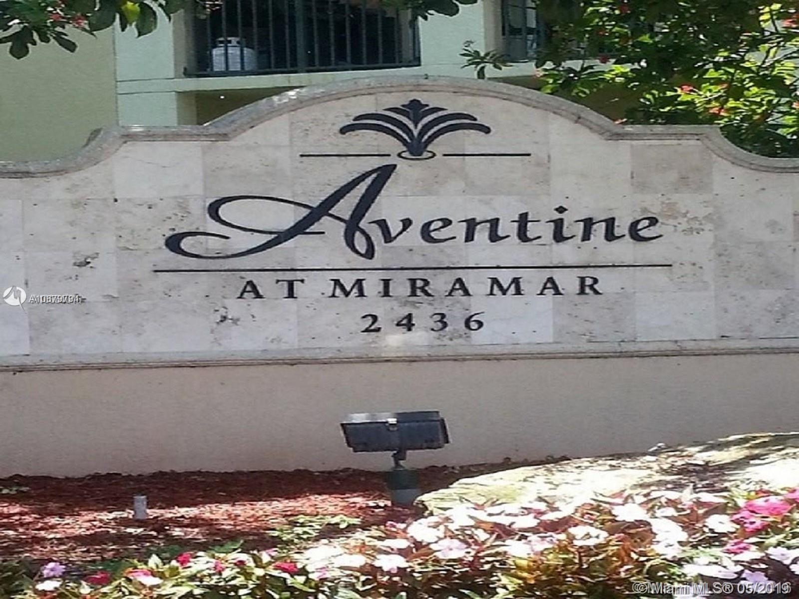 GARAGE INCLUDED LAKE VIEW ONE BEDROOM ONE BATHROOM SPACIOUS CONDO LOCATED IN PRESTIGIOUS AVENTINE AT MIRAMAR. VERY WELL KEPT GATED COMMUNITY, GORGEOUS LAKE, WALKING/BIKING TRAILS, TENNIS COURTS, FITNESS CENTER, CLUBHOUSE W/ BEAUTIFUL POOL, PICNIC AREA WITH BBQ LOCATIONS. UNIT IS IN MINT CONDITION. INSURANCE, BASIC CABLE, WATER, PEST CONTROL, AND CAR WASH ARE INCLUDED. THIS UNIT WILL NOT LAST LONG. MUST SEE TO APPRECIATE. INVESTORS WELCOMED