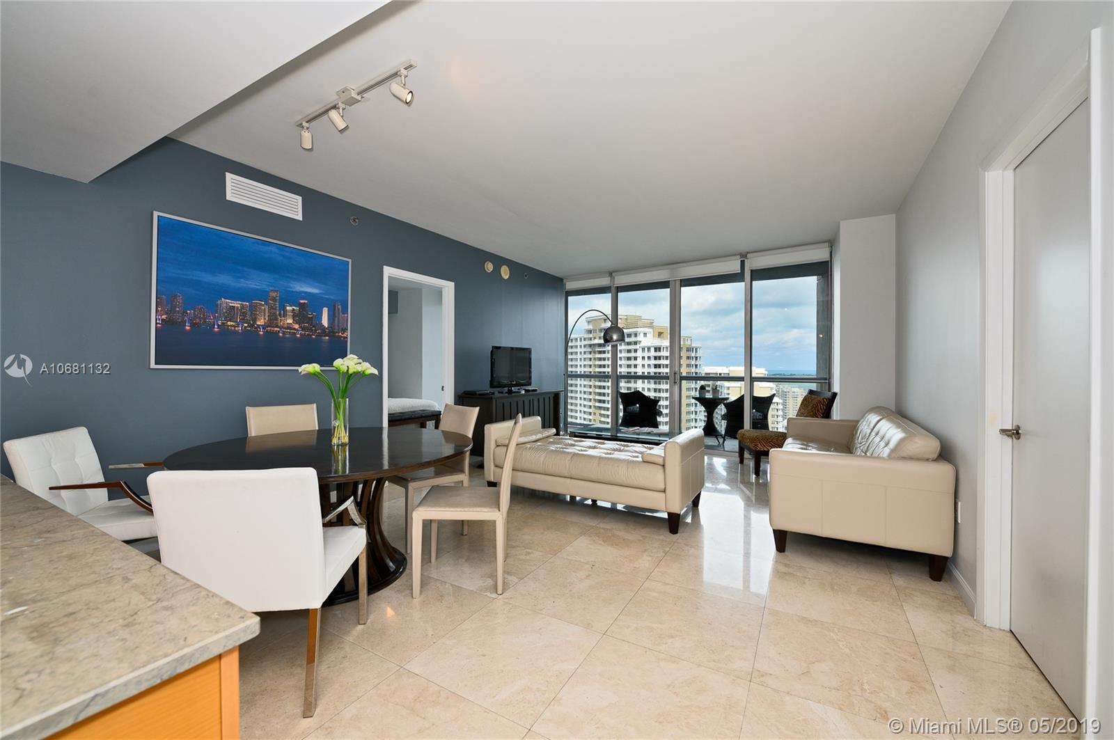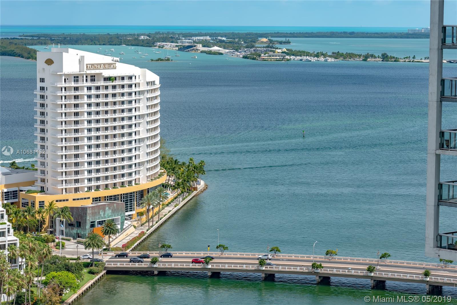 Breathtaking views from this impeccable 2 Bedrooms + Den/ 2 bathroom. Highrise unit with direct views to the Bay, Brickell Key and Miami Port. Floor-plan makes it easy to decorate. Den with door can be turned into a third Bedroom. 1 Parking Space on 10th Floor #181 with Valet parking. Building Features five star resort, with spa and fitness center, Olympic pool/lounging area, Thermal Hot Tub, ,Full Time Concierge, Security and Offer a Full Range of Services. Two Restaurants: The World Famous “Cipriani” & Cantina La20. Notify by Showing 24 hours before.