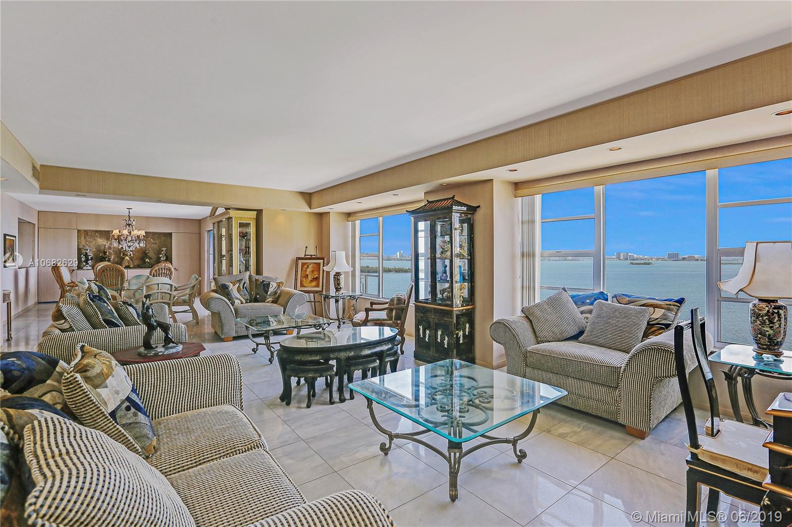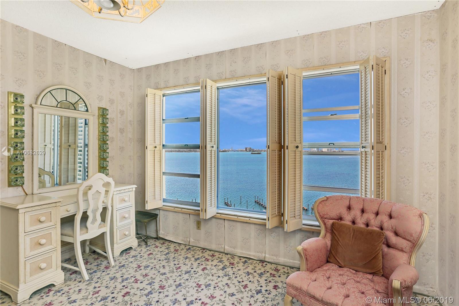 Rarely available! Two unit condo composed of 2,921sqft total! Make this into your dream 4 bedroom 4 bath home! Walk in thru an elegant double door entry and large foyer and enjoy breathtaking views of Biscayne Bay and the Miami Beach and Miami Skyline from floor to ceiling windows in every room. Full service building with 24 hr. security, pool, hot tub, children's play area, ample guest parking, complimentary valet, membership to Miami Shores Country Club and US1 Fitness. Situated in a 23 acre, 24hr gated waterfront community minutes to beaches, airports, Aventura Mall and Bal Harbour Shops.