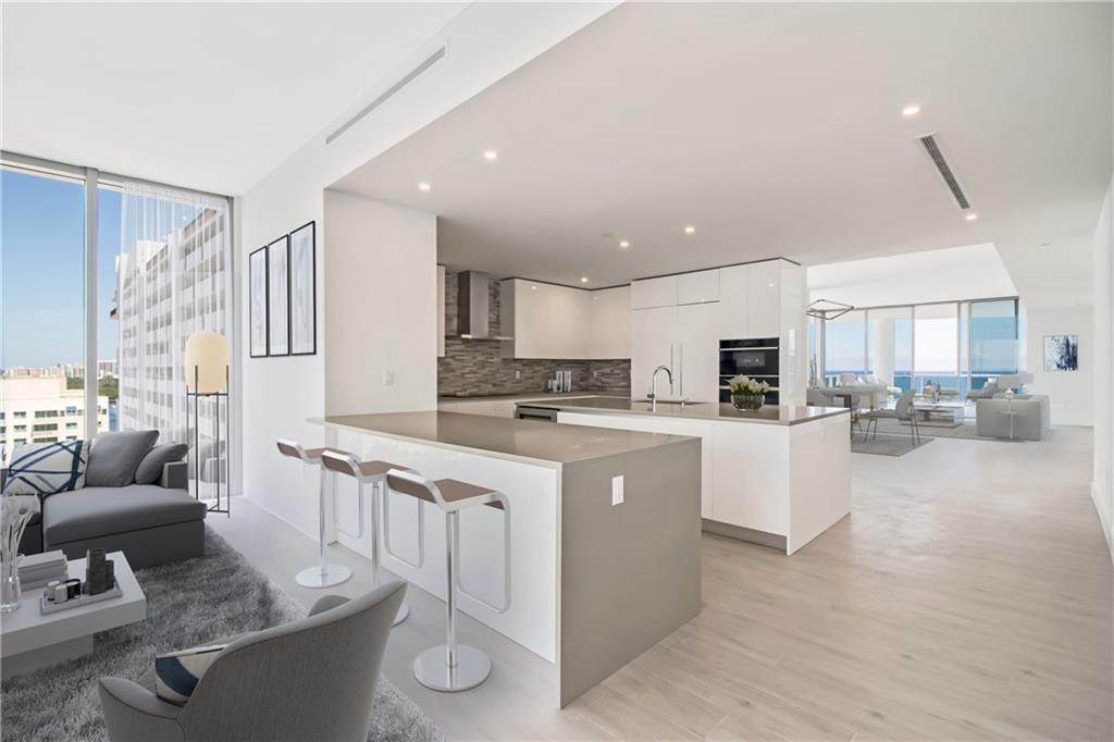 Aquablu - New Construction Ready For Immediate Occupancy. Situated directly On The Intracoastal Waterway & Within Walking Distance Of Restaurants, Coffee Shops, Shopping, Fitness Centers, Nightlife, The Water Taxi & Ft Lauderdale Beach. This Contemporary Flow Through Corner Unit Offers 3 Br, 3 FBA, 1HBA & 2 Assigned Garage Parking Spaces (1 space is electric car ready). The Luminous Open Floor Plan Boasts 10' Ceilings & Multiple Sliding Door Ways That Open Onto Oversized Balconies. Unobstructed Breathtaking Direct Ocean, Intracoastal & City Skyline Views. The Waterside Balcony Features A Summer Kitchen. The Large Contemporary Kitchen Is Truly The Center Piece Of The Floor Plan. 5 Star Amenities Including Valet & Concierge. Dockage Available. (Owner Financing) Sq. Ft. From Developer