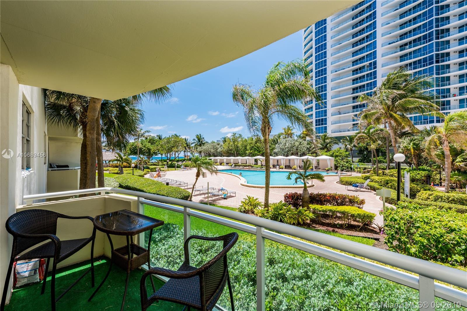 Great investment opportunity, rent from the first day or live in this renovated 1 bedroom and 1 bathroom unit located on the first floor with a pool view. Kitchen with granite counter tops, impact windows, new AC, new floors, custom controlled blinds, walking closet. Come and enjoy the resort style amenities such as valet parking, exercise room, cabanas, Tiki bar, pool/jacuzzi, steam & sauna,convenience store or just walk to the beach and enjoy the sunrise/sunset.