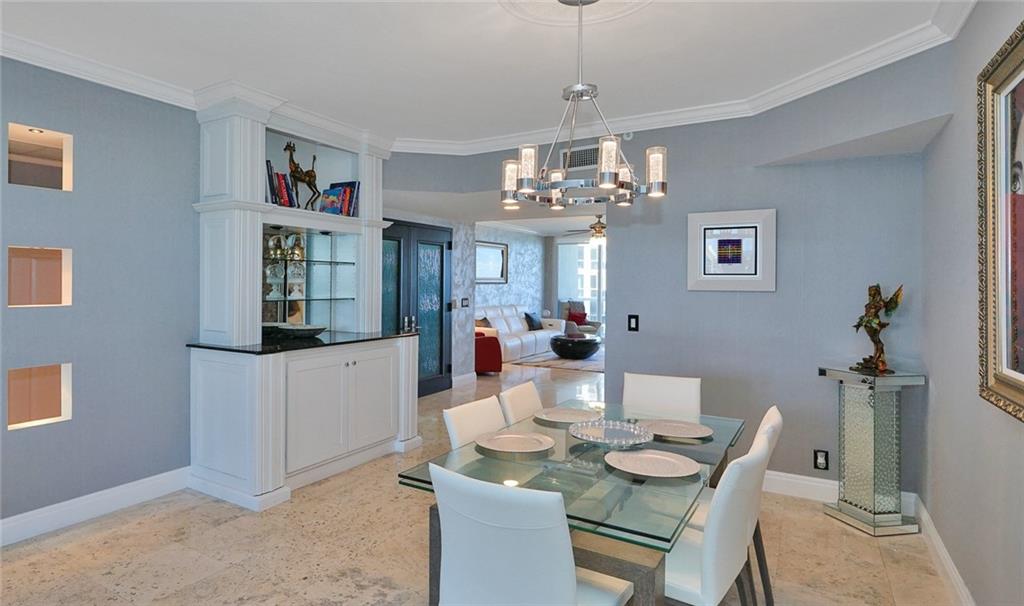 Direct Oceanfront Condo overlooks Ocean, ICWW and City. $80k in renovations including NEW IMPACT WINDOWS & DOORS on oceanside. Spectacular Master Bath featuring a soaking tub, Carrera marble, and contemporary lighting. Private elevator entryway with beautiful Venetian Plaster. Sliding modern doors with Murphy Bed/Sofa allow the Den to be used as a 3rd bedroom. Private elevator entryway, Marble and Porcelain floors. Contemporary lighting fixtures. Venetian Plaster and designer wallpaper in popular gray tones. This unit shows beautifully with endless ocean views. Motivated Seller! L'Hermitage is a pet friendly bldg. featuring 3 pools, cafe, tennis, Gated entrance, valet, concierge, fitness & business center. Easy to show