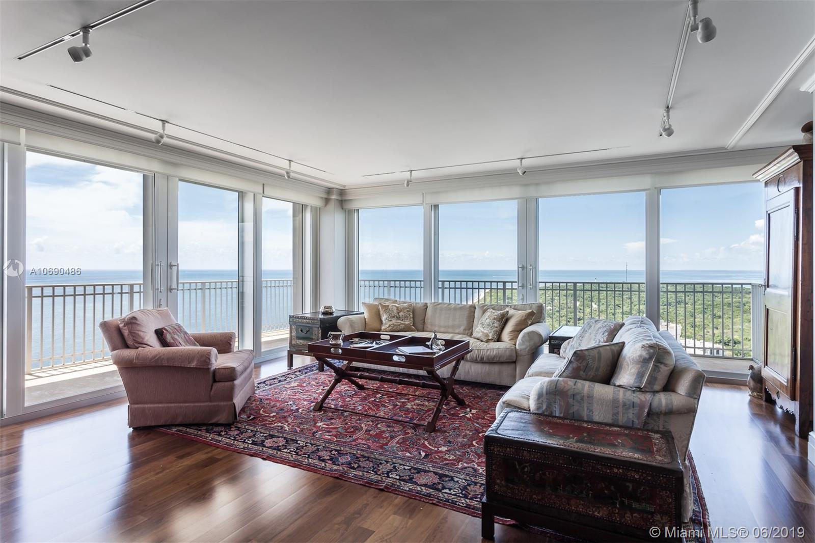 Magnificent beachfront spacious (3120 sq.ft.) corner residence on penthouse level boasts awe-inspiring expansive views of the Ocean: Bill Baggs Park and its lighthouse to the South and South Beach to the North. Towards the West side, Bay views and the Pines Canal offer extraordinary ever-changing sunsets. Beach and ocean views can be enjoyed from the wrap around balcony and from all the bedrooms and living areas. Unit has been totally & elegantly remodeled to a 2 bed/3 bath that can very easily be converted back to a 3 bedroom/3 bathroom flat. Top of the line finishes and appliances combined with tasteful choices of decorating elements enhance the sense of luxury. Well established Key Biscayne bldg with direct beach access, pool, tennis courts, exercise rm, children playground & party rm.