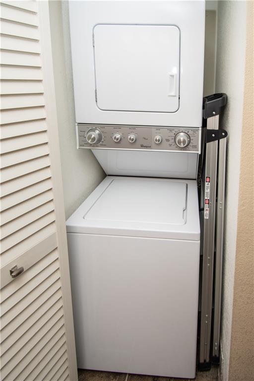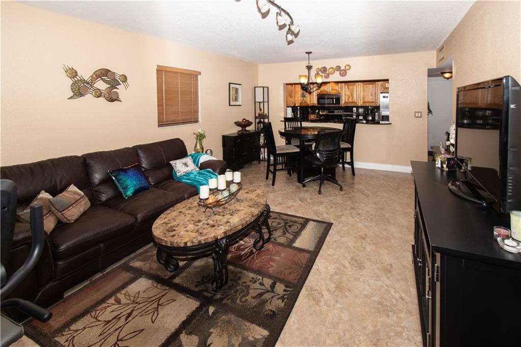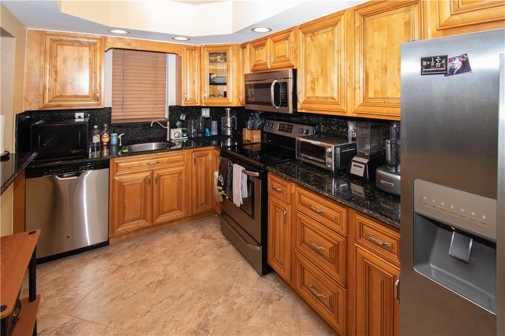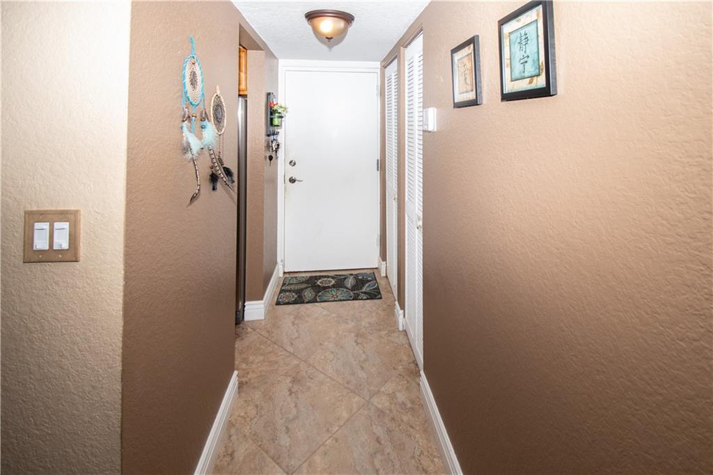 Move right in - upgraded kitchen and stainless appliances with granite counters. Hurricane impact windows and impact glass sliding doors leading to each of the two screened balconies installed two years ago. Washer and dryer in unit. New water heater. Corner unit. Tile in living areas and carpet in bedrooms. Knock down on ceilings (popcorn removed). Clean and well maintained. Large rooms. Plenty of parking.