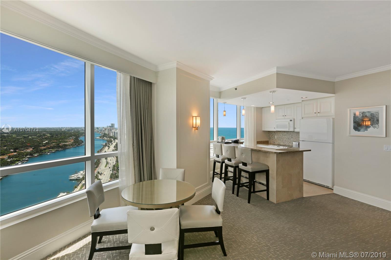 Beautiful 2BD/3BA with spectacular unobstructed ocean, bay & intracoastal views at the Fontainebleau II. Enjoy full service, vacation-style living in a furnished turnkey unit with sleeper sofa & more. Enroll in hotel rental program & receive income while away! The Fontainebleau Resort offers luxury amenities on 22 oceanfront acres including award-winning restaurants, LIV night club, Lapis spa & state-of-the-art fitness center. Maintenance includes: AC, local calls, electricity, valet + daily free breakfast in the owner’s lounge.