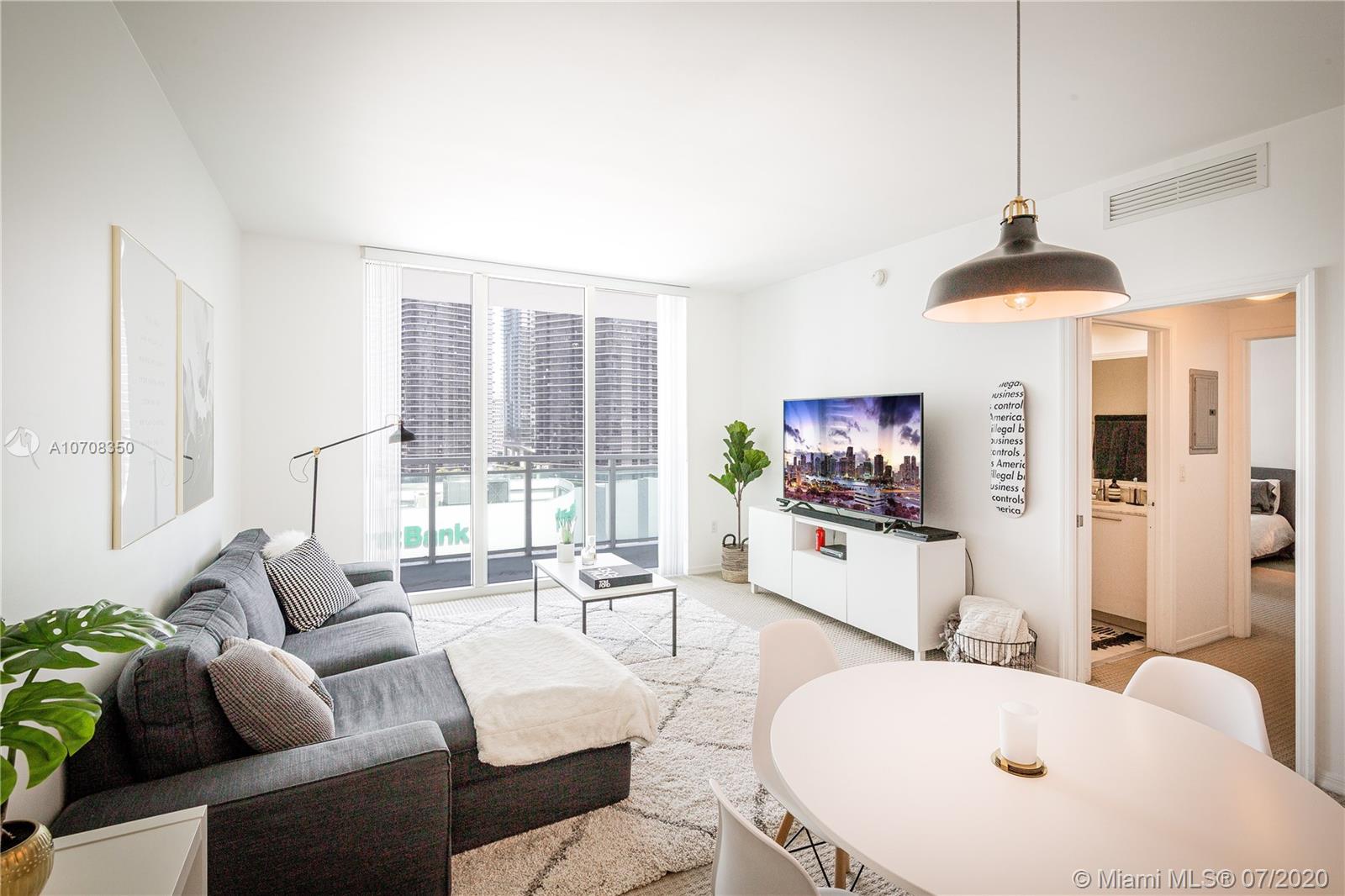 Spacious and bright 1 bedroom 1 bath apartment with a fantastic Brickell city view in at The Plaza on Brickell. Layout features 702 sqft. This model features the larger kitchen. The Plaza features two heated infinity pools, hot tub, fitness center, club room, theater, and a business center. Pet friendly. Close proximity to dining, shopping & entertainment. Vacant & easy to show.