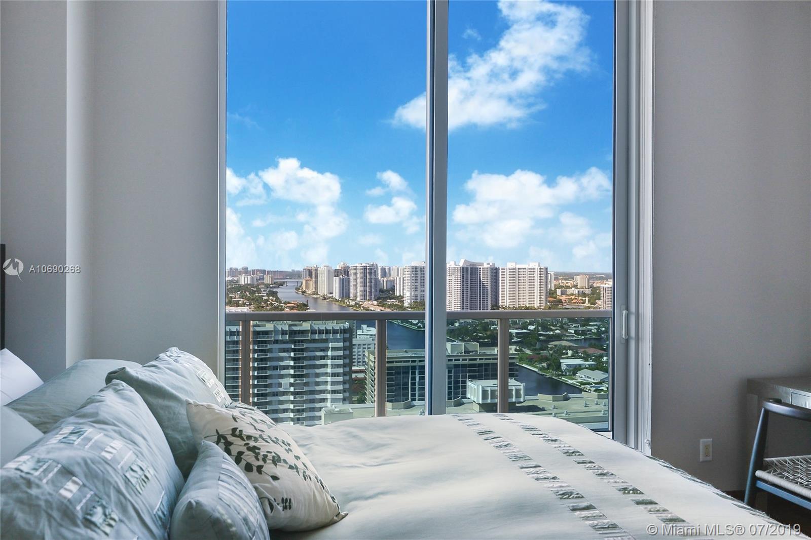 THIS MODERN CONDO HAS NATURAL LIGHT FROM UNOBSTRUCTED PANORAMIC VIEWS OF THE OCEAN, INSTRACOASTAL AND CANALS.THE OPEN CONCEPT EMBRACES 2-BEDROOM WITH 2-1/2 BATHROOMS BOTH WITH BUILT-IN WALK-IN CLOSETS WITH MARBLE & SOLID HARDWOOD FLOORS. THE HIGH FLOOR-TO-CEILING WINDOWS AND SLIDING DOORS FRAME THE VIEW LIKE A PICTURE. BALCONY HAS GLASS FRAME TO ENJOY THE ENLESS VIEWS. THE KITCHEN HAS HIGH-END APPLIANCES, SMARTY CONCEALED LAUNDRY WITH ORGANIZED PANTRY. THIS MODERN BUILDING OFFERS MANY AMENITIES LIKE 24/7 FRONT DESK ATTENDANT, GUEST VALET SERVICE, BUSINESS CENTER & CONFERENCE ROOM, WELL EQUIPPED FITNESS CENTER, POOL DECK WITH CABANAS FACING THE WATER AND MARINA. STEPS FROM THE SANDY BEACH, WALKING DISTANCE TO FINE DINING & ENTERTAINMENT, ACCESS TO INTERSTATE HIGHWAYS, AIRPORT AND SEAPORT