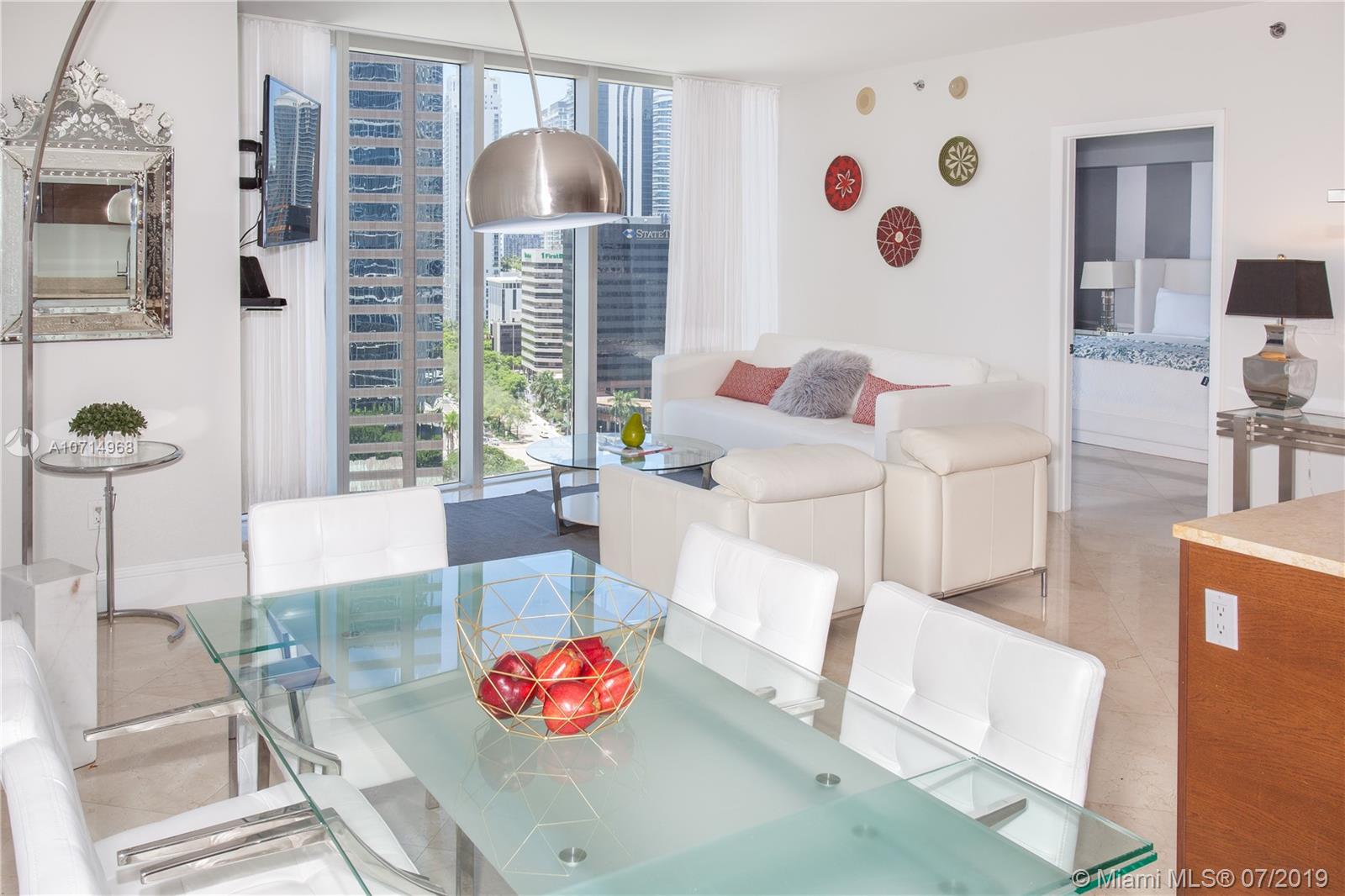 Completely furnished and equipped unit as per the images. Large marble floor tiles. It overlooks the ocean. Perfectly maintained. No Ikea or TUI furniture. Ready to occupy or rent. Condo occupied with short term tenants. Icon Brickell Residences, with 300-ft long pool, hot tub, gym, saunas. Marble counter tops, fully equipped, including sofa bed. Art, linen, kitchenware not included.