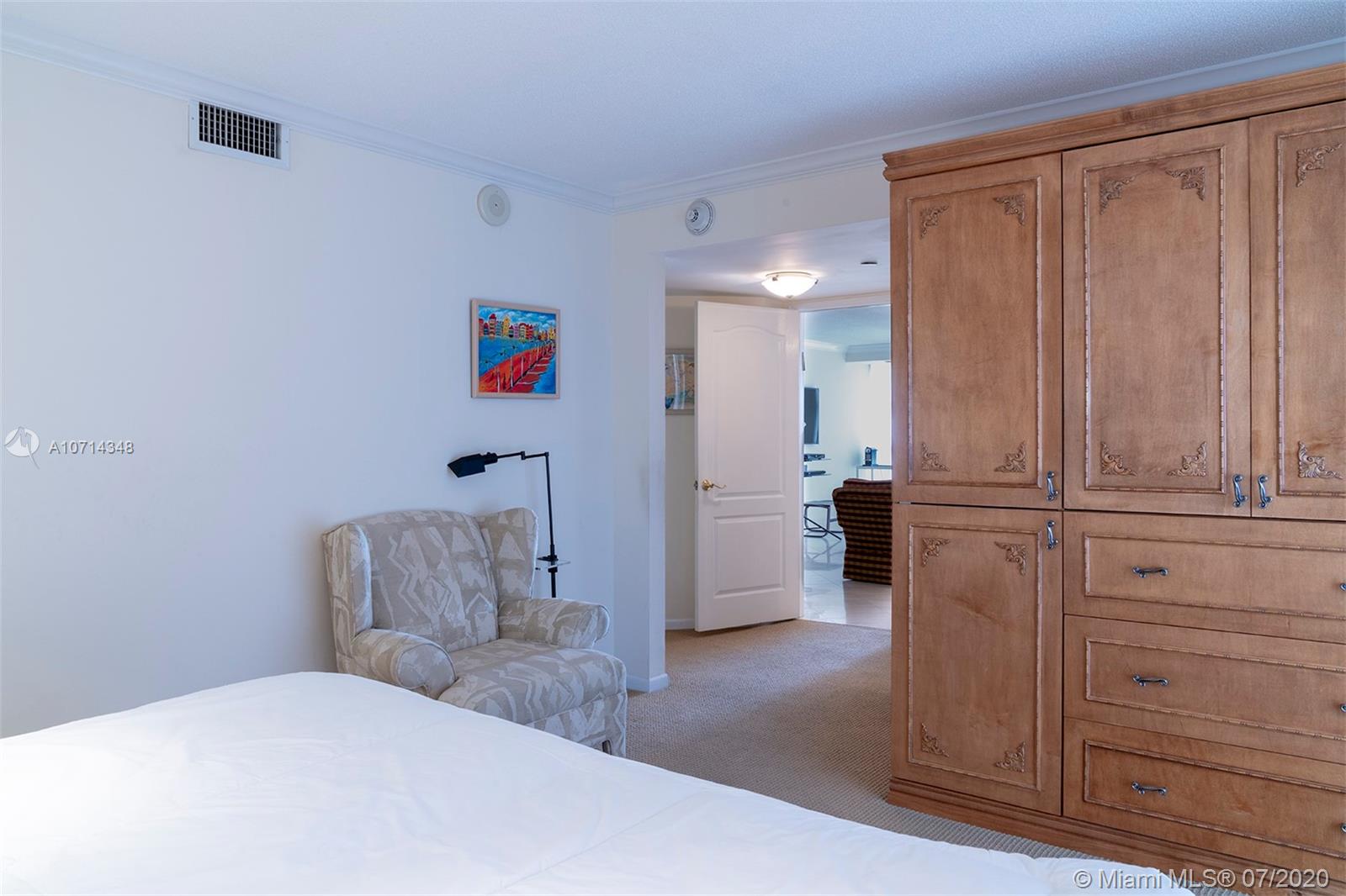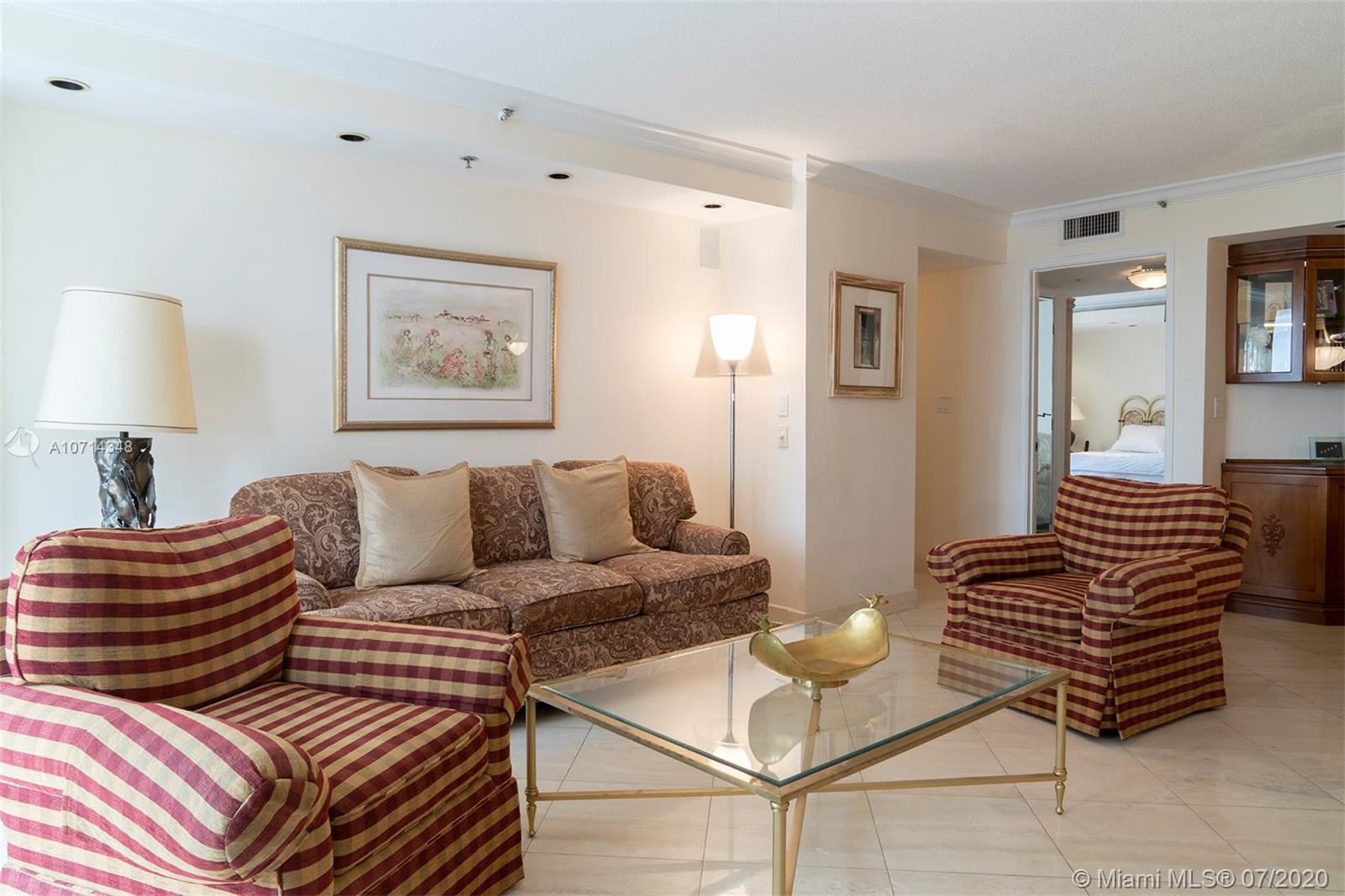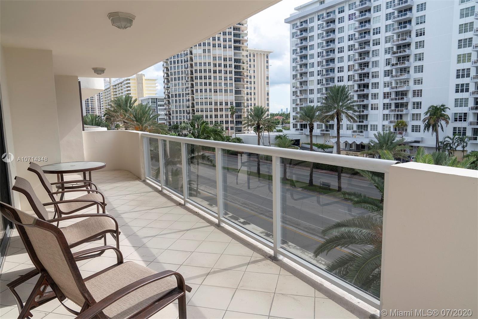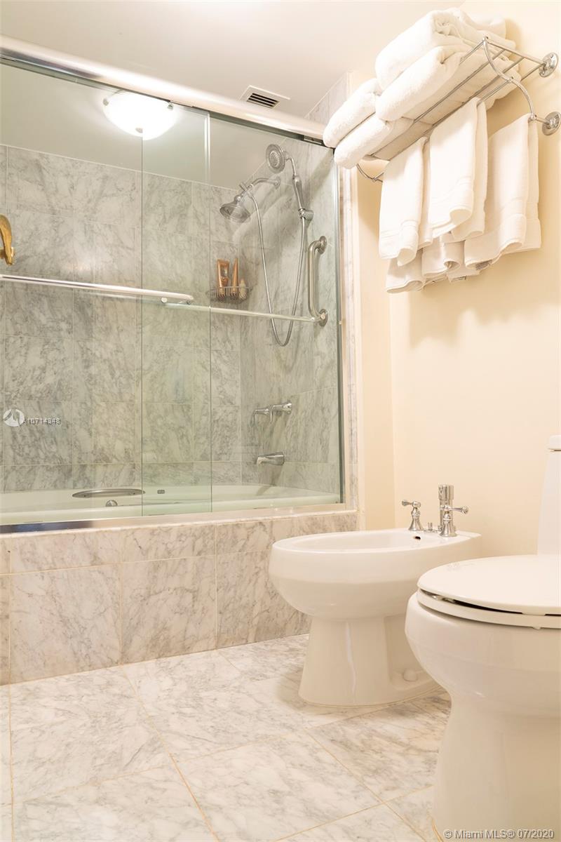 Bring your client and make an offer to this very well maintained apartment located in a very elegant building. It comes with 2 Deeded Covered Parking Spaces, new Air Conditioner. Wraparound balcony and a second balcony private to Master Bedroom. Both balconies with views to the Ocean, Intracoastal and Collins Avenue. Marble floors, carpet in the bedrooms. Special Assessment $231.38 monthly until February 2026.MOTIVATED SELLER!