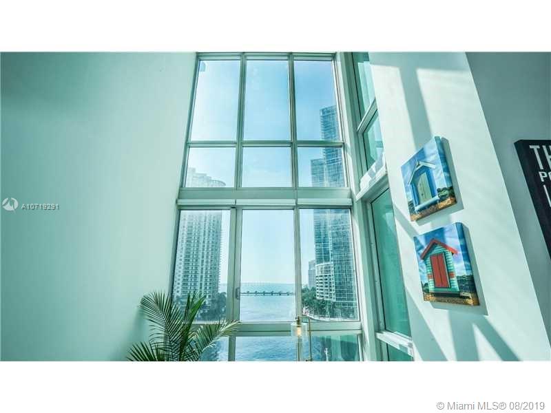 Amazing bay views from this 2-story Loft with South exposure. This one-of-a-kind unit offers 19'4" high ceilings, tile floors throughout, floor to ceiling black-out shades. Master bedroom upstairs. Granite counter tops, stainless steel appliances, top-of-the-line appliances. Water, basic cable and Internet included. One assigned parking space on the same floor. Walk to Whole Foods Market, Bayfront Park, metro mover and Novikov Bar & Grill Restaurant, Joe & the Juice downstairs and 17 screens' Silverspot Cinema. Building offers luxurious life style, 24-hr front desk attended. Chic downtown living at its best!