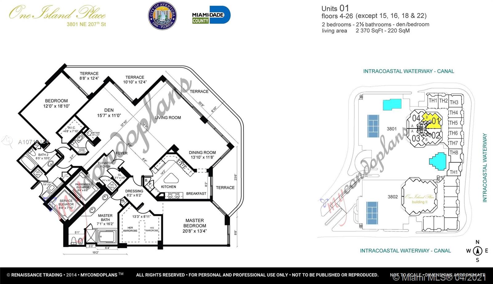 Splendid unit, with magnificent views overlooking the Intracoastal and ocean view from every room. Private elevator and foyer that opens into this 01 line that has 3 bedrooms and 2.5 baths. Amenities include 2 swimming pools, tennis, snack bar on weekends, and a completely remodeled gym. Comes with 2 covered parking spaces and one storage bin. Adjacent to the WaterWays Marina.