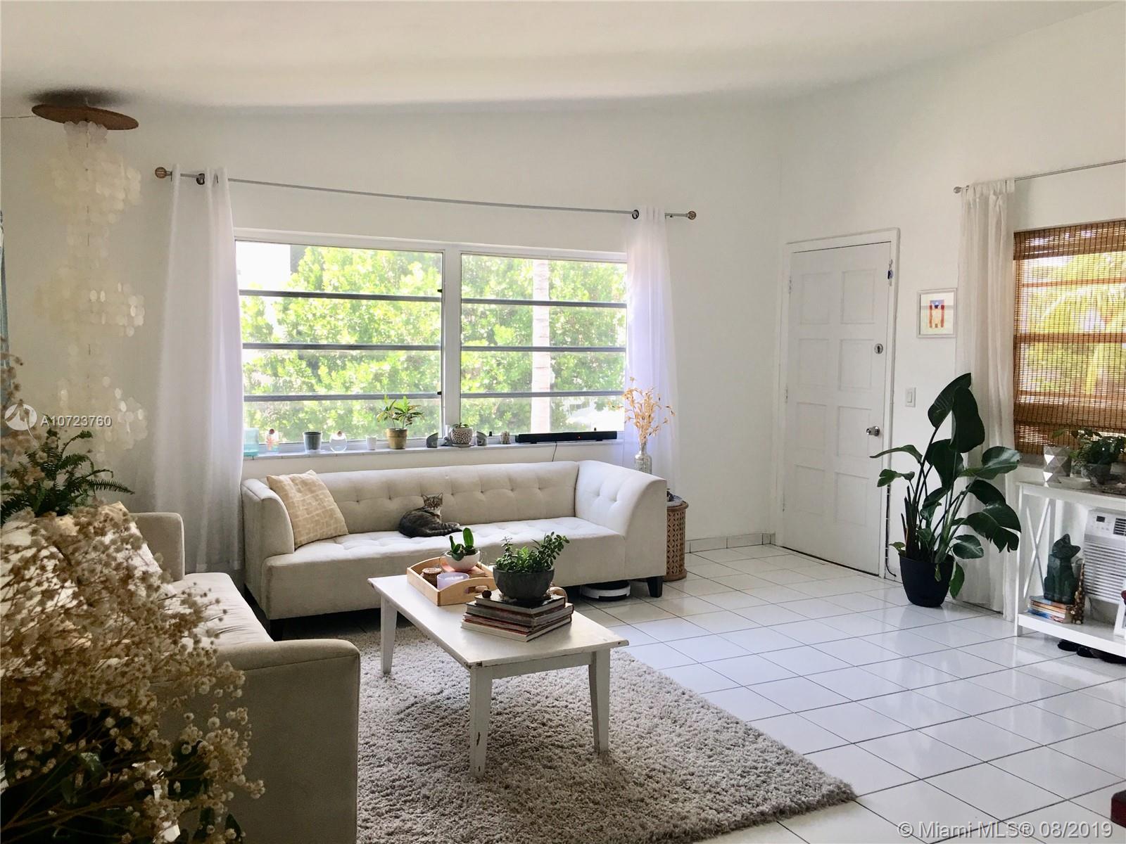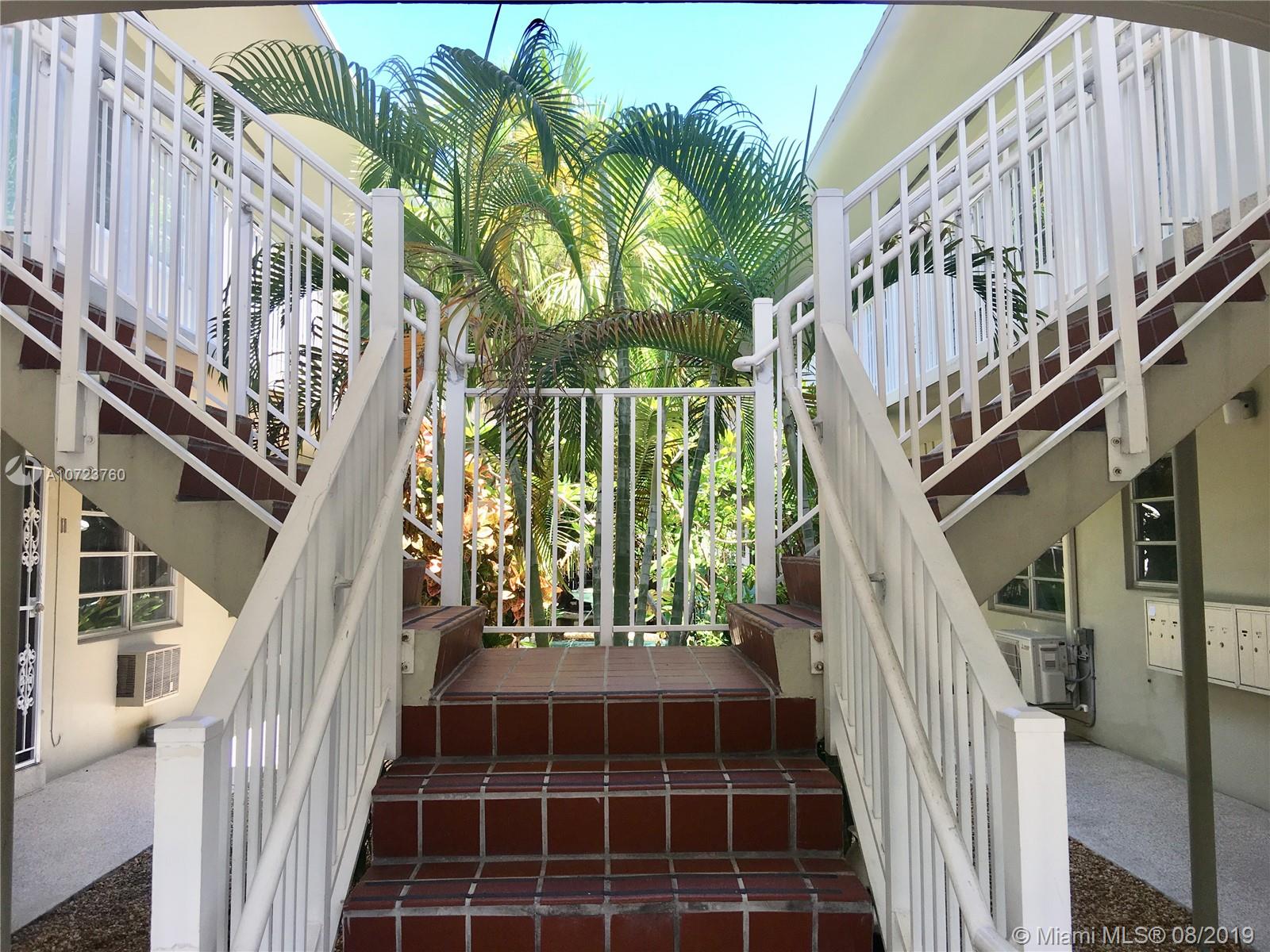 Beach Bungalow! One block from the ocean, South of Fifth!. Front corner, light filled, one bedroom, one bath condo, with vaulted ceiling and private balcony in boutique , Mid Century Modern, courtyard building, on the corner of 1st and Collins. Tile floors, combo washer/dryer, abundant closets, spacious rooms. Perfect, affordable, beach place! Shows well, as-is, but could be spectacular with upgrades. 500 feet to the sand in exclusive Sofi!